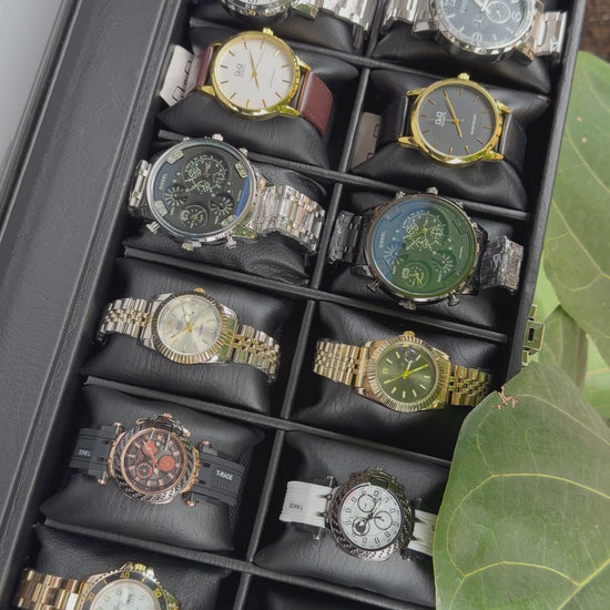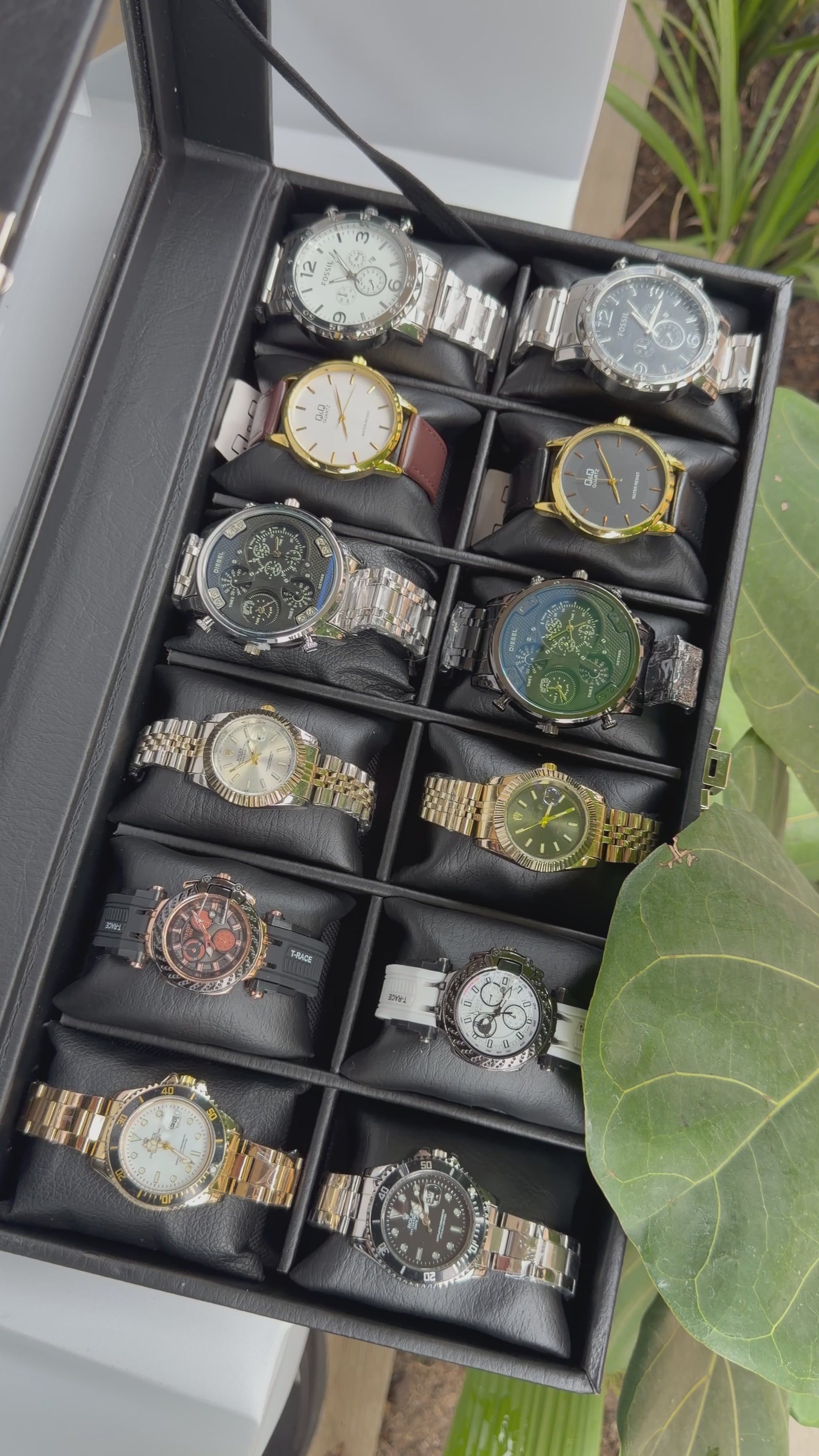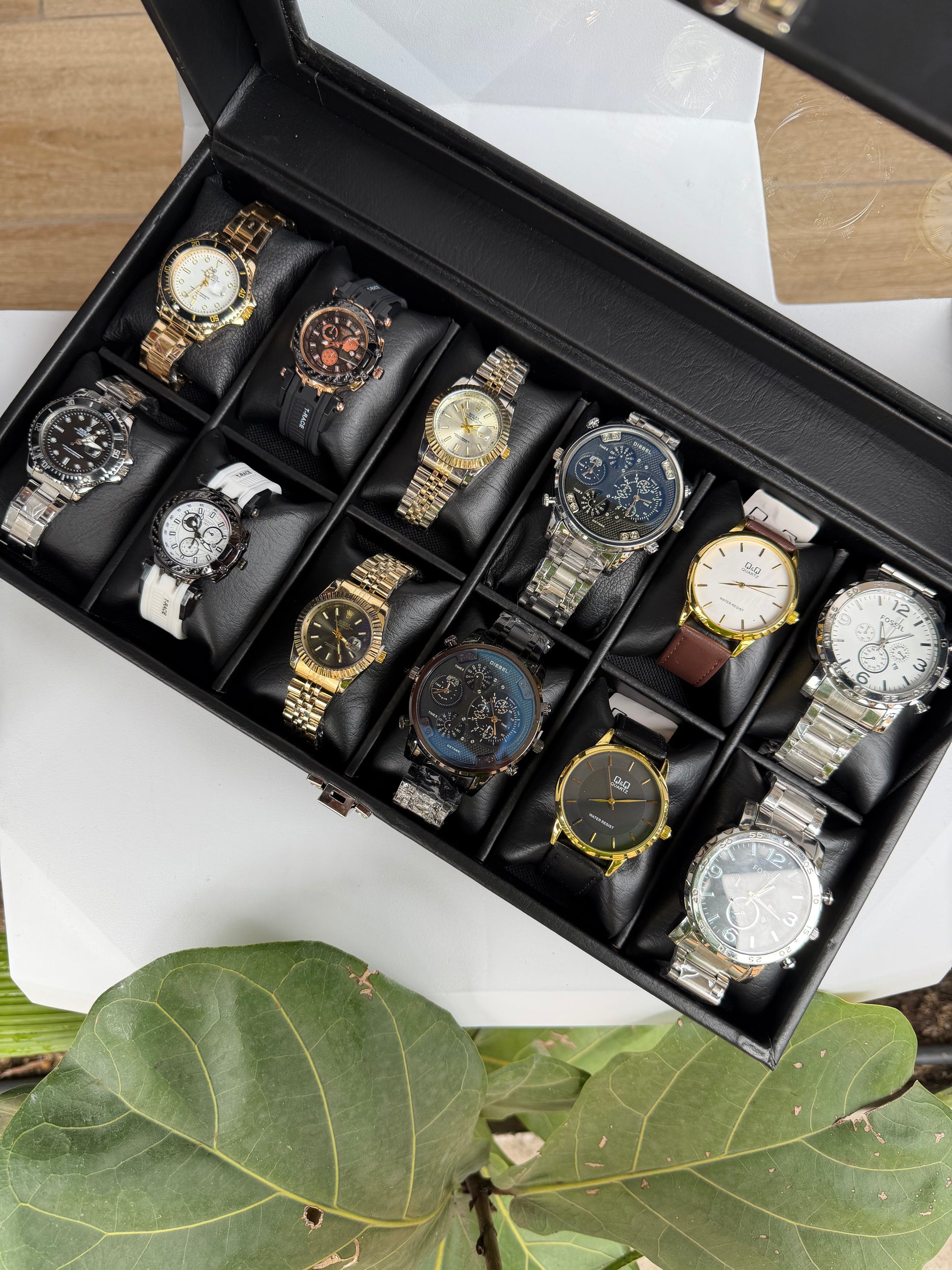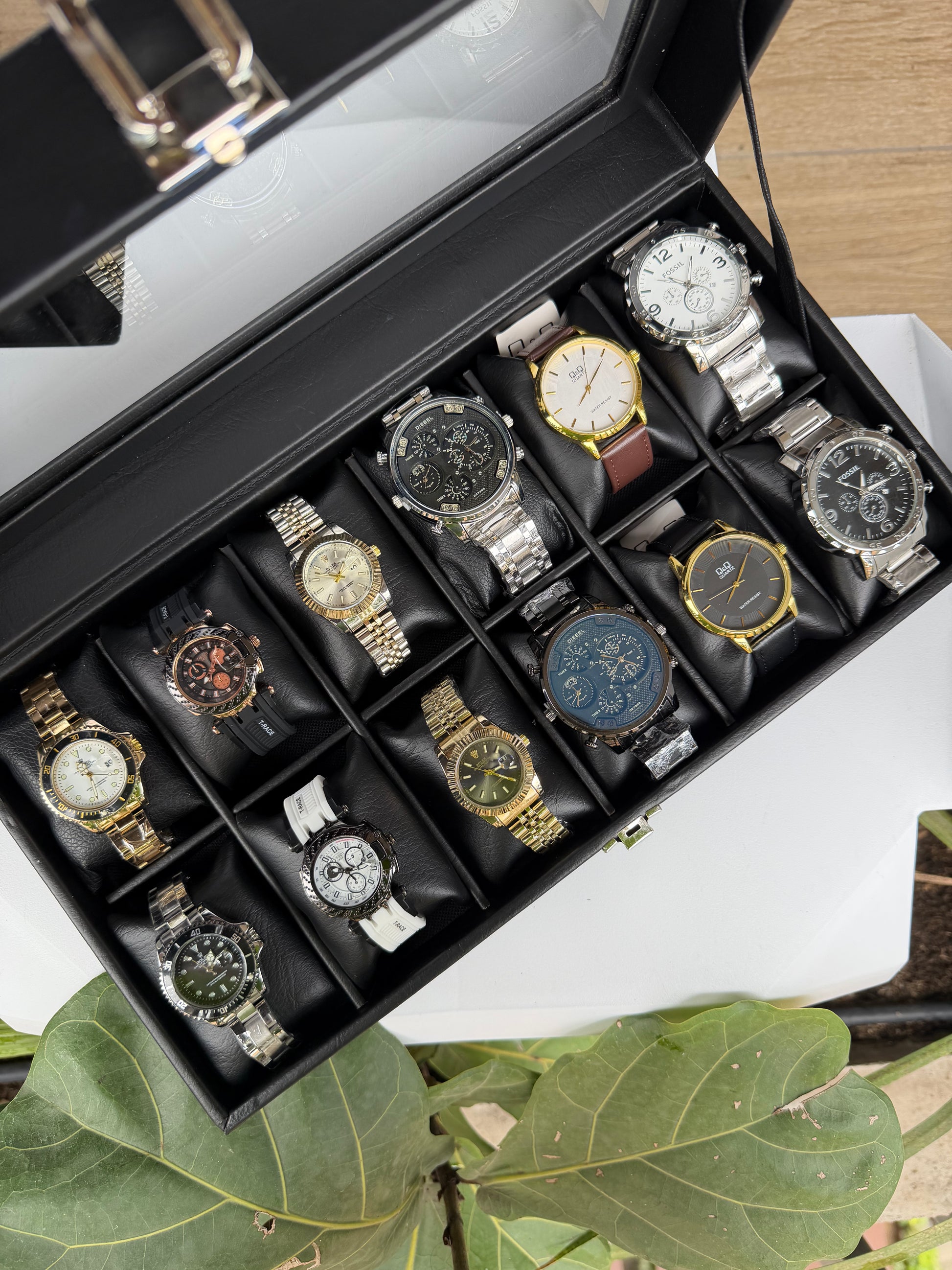 Relojeras se venden a parte (la categoría se llama relojeras y ahí están todas las disponibles para añadir a tu compra según la cantidad de relojes en el combo)