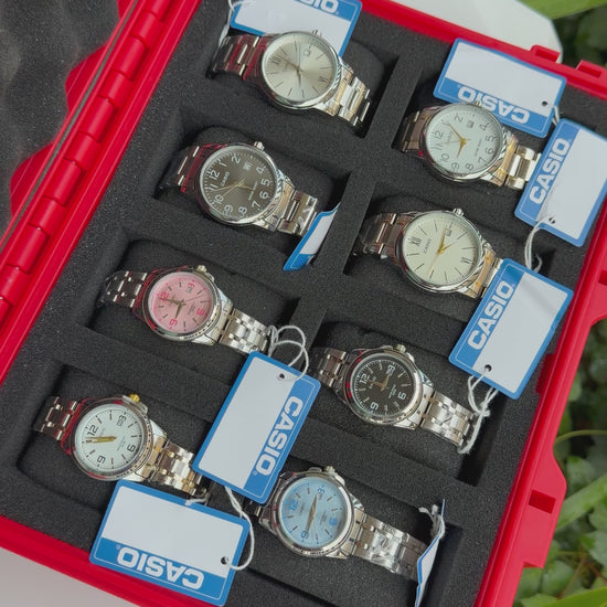 Relojeras se venden a parte (la categoría se llama relojeras y ahí están todas las disponibles para añadir a tu compra según la cantidad de relojes en el combo)