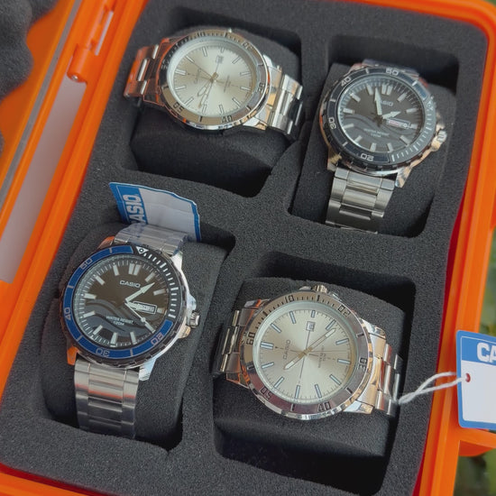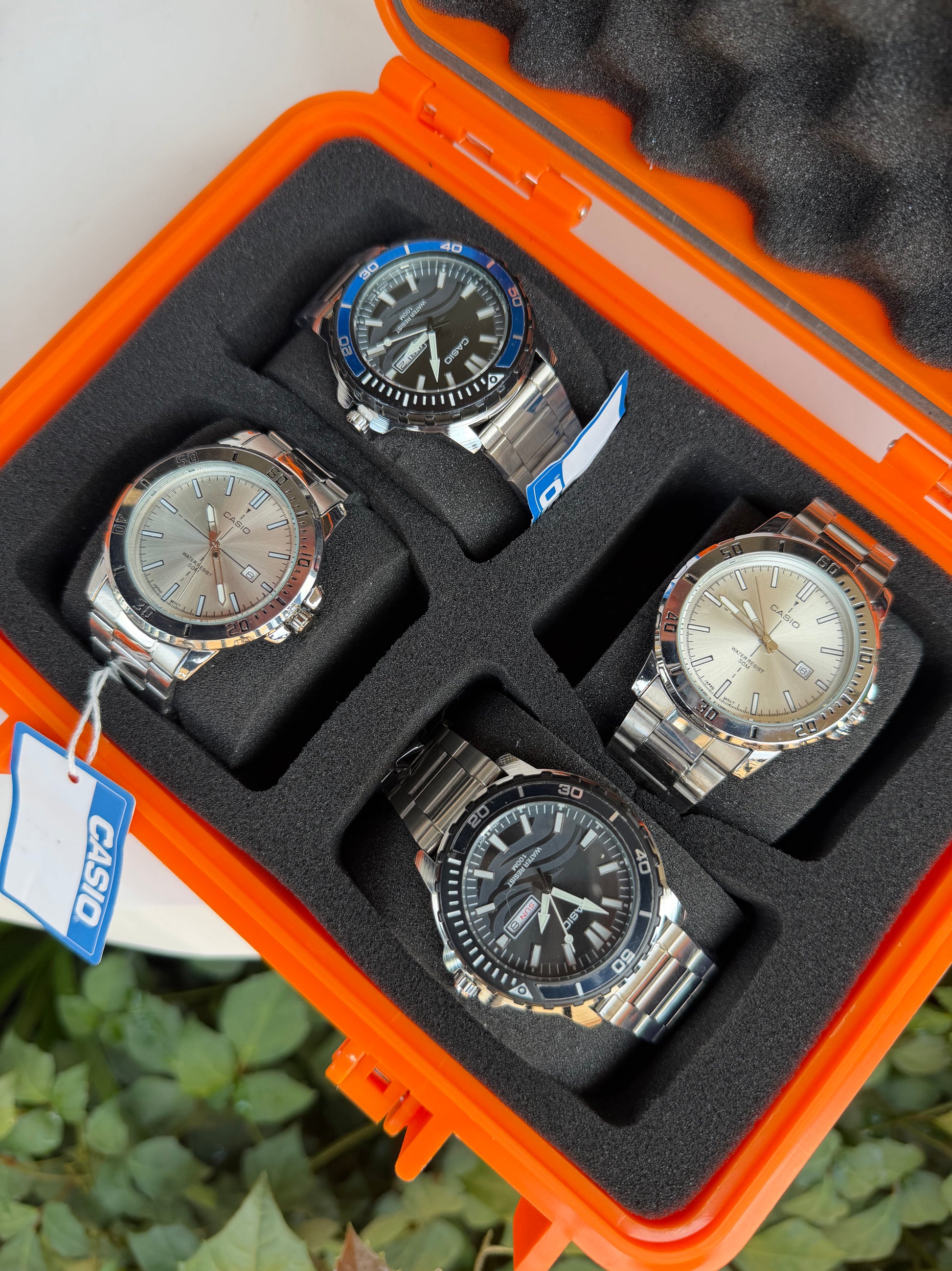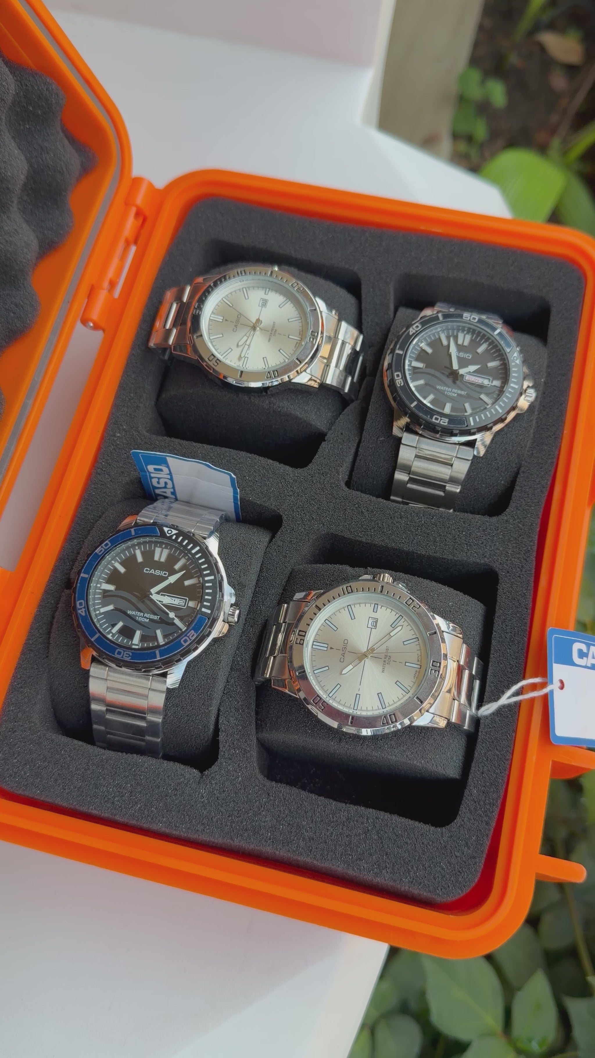 Relojeras se venden a parte (la categoría se llama relojeras y ahí están todas las disponibles para añadir a tu compra según la cantidad de relojes en el combo)