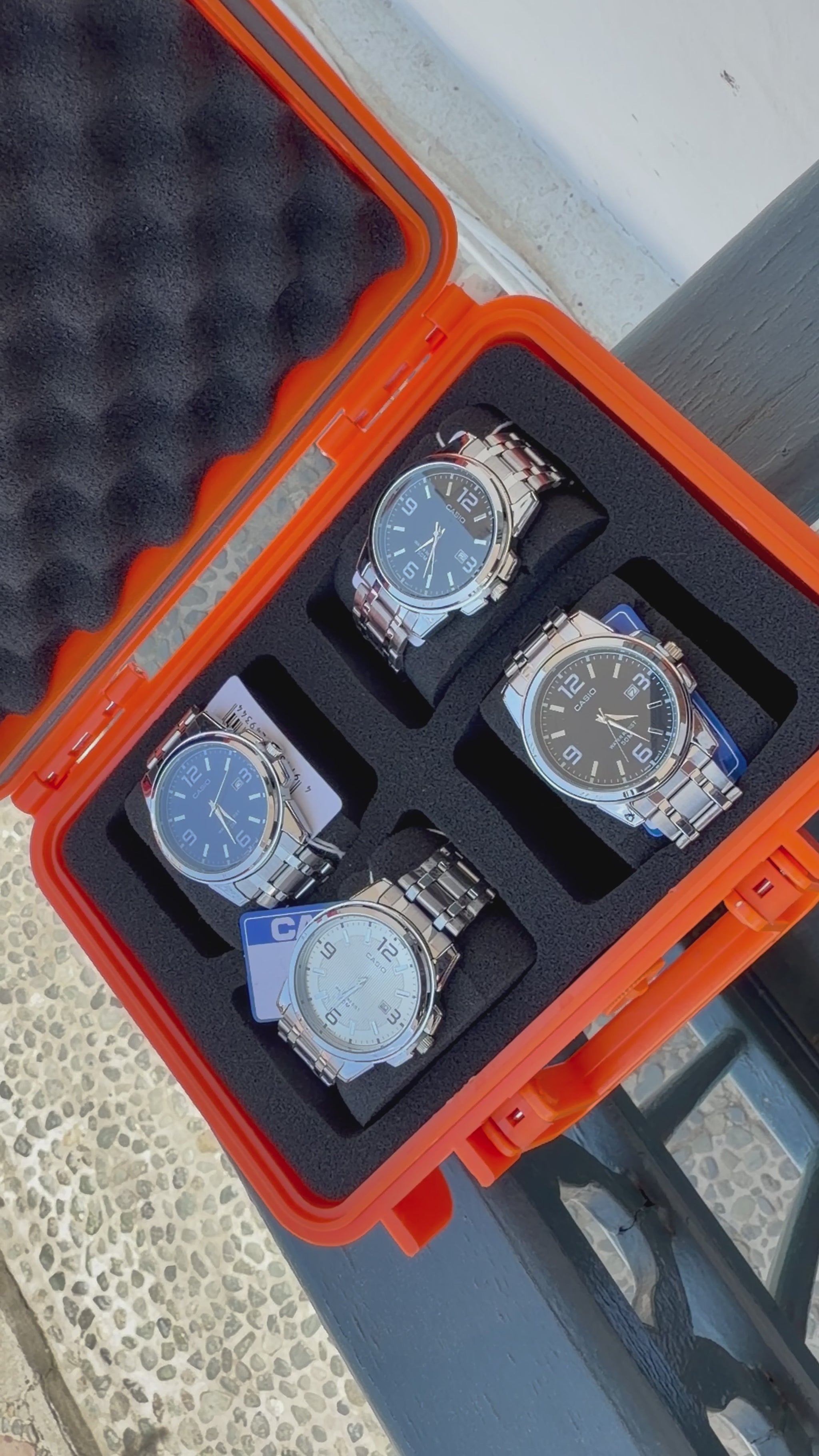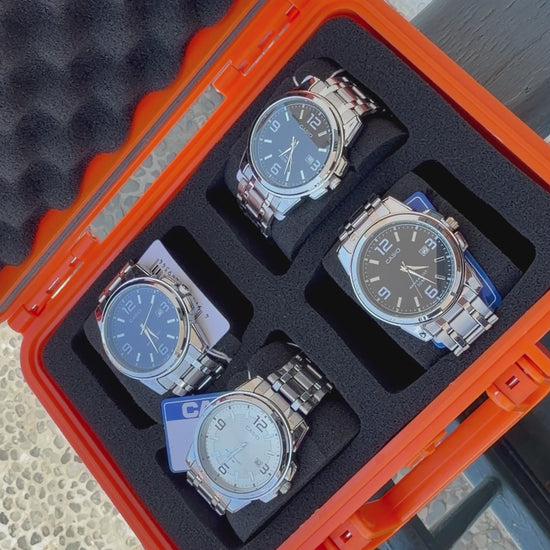 Relojeras se venden a parte (la categoría se llama relojeras y ahí están todas las disponibles para añadir a tu compra según la cantidad de relojes en el combo)