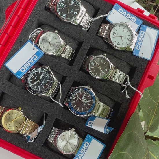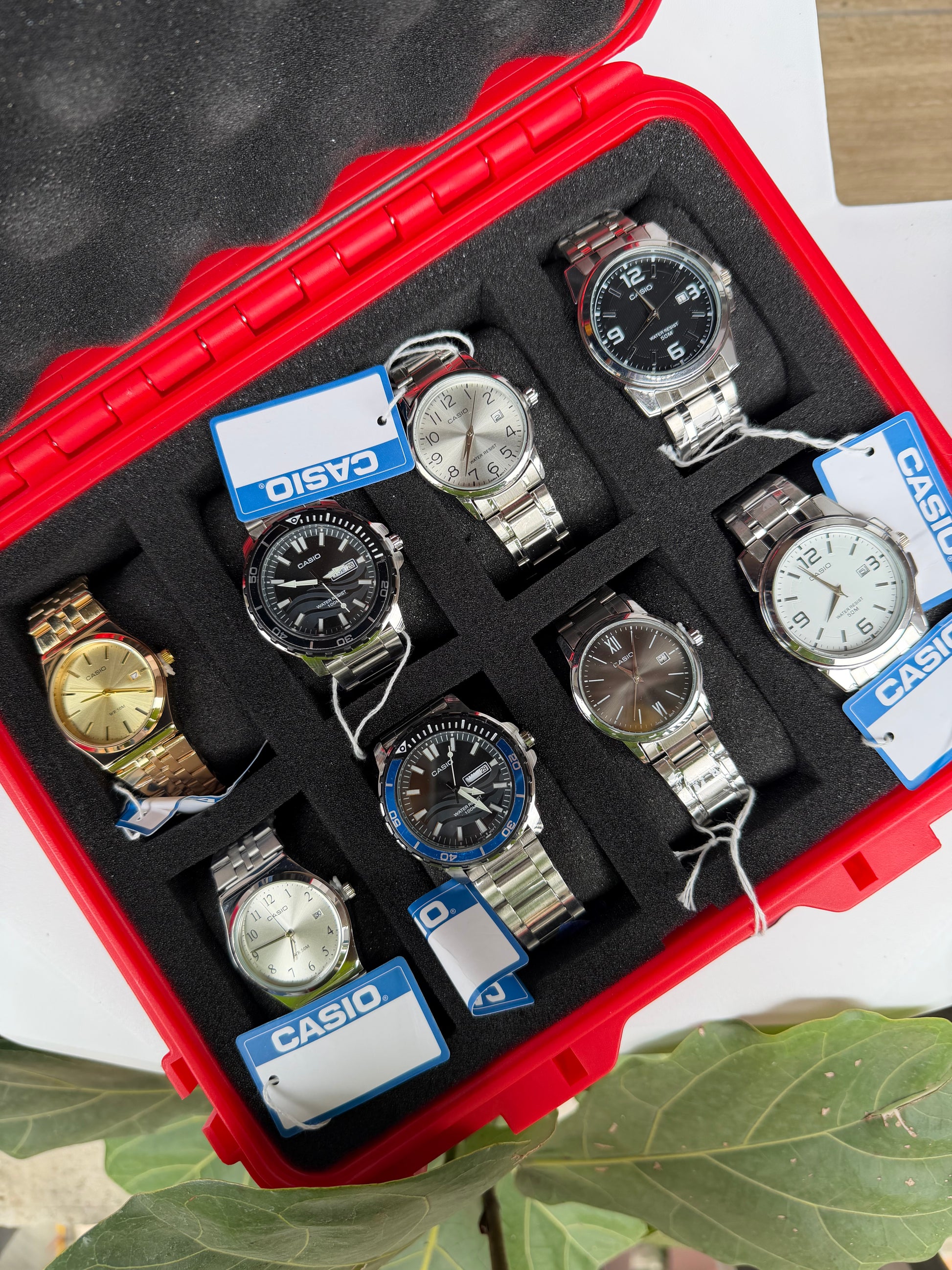 Relojeras se venden a parte (la categoría se llama relojeras y ahí están todas las disponibles para añadir a tu compra según la cantidad de relojes en el combo)