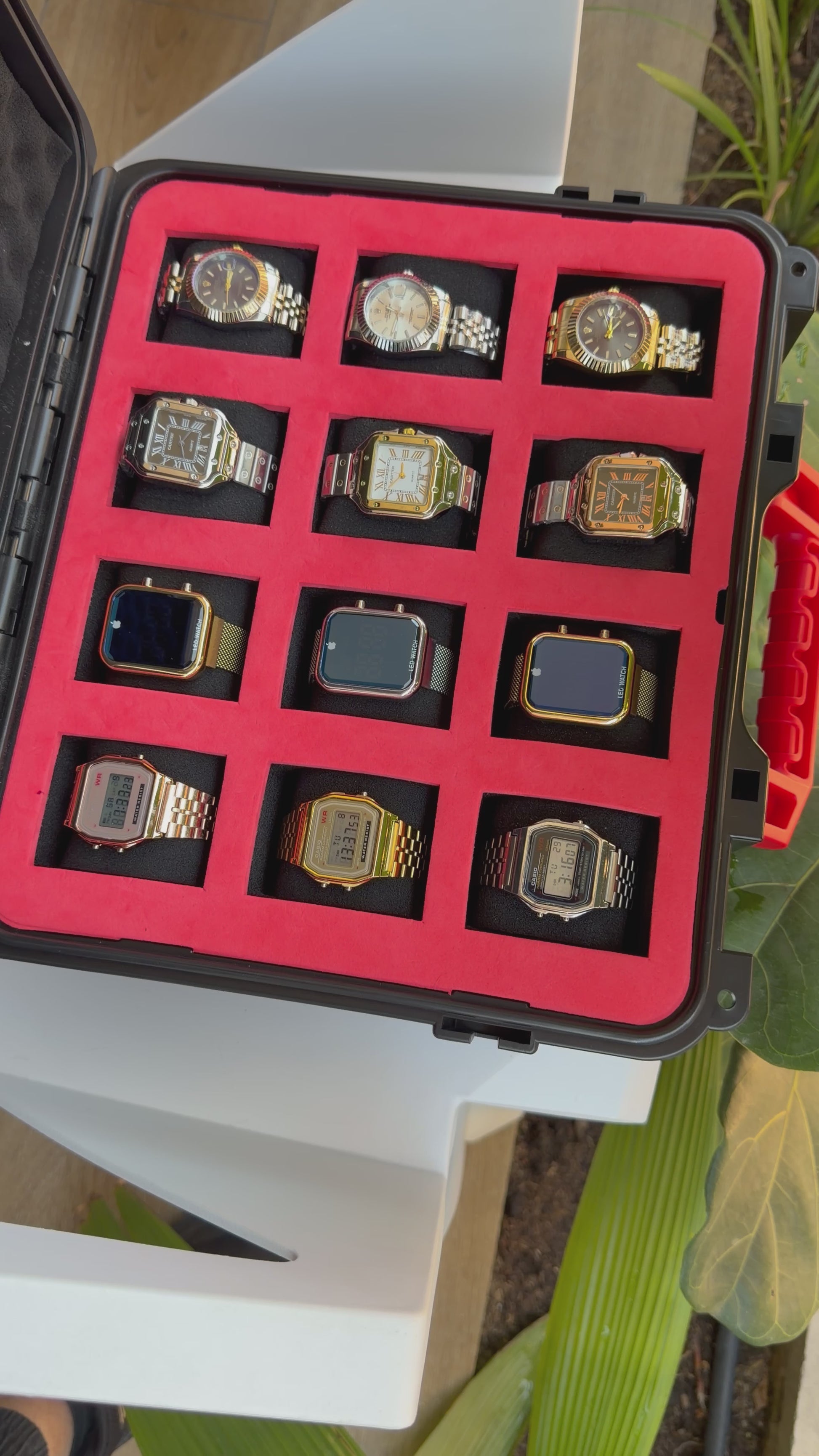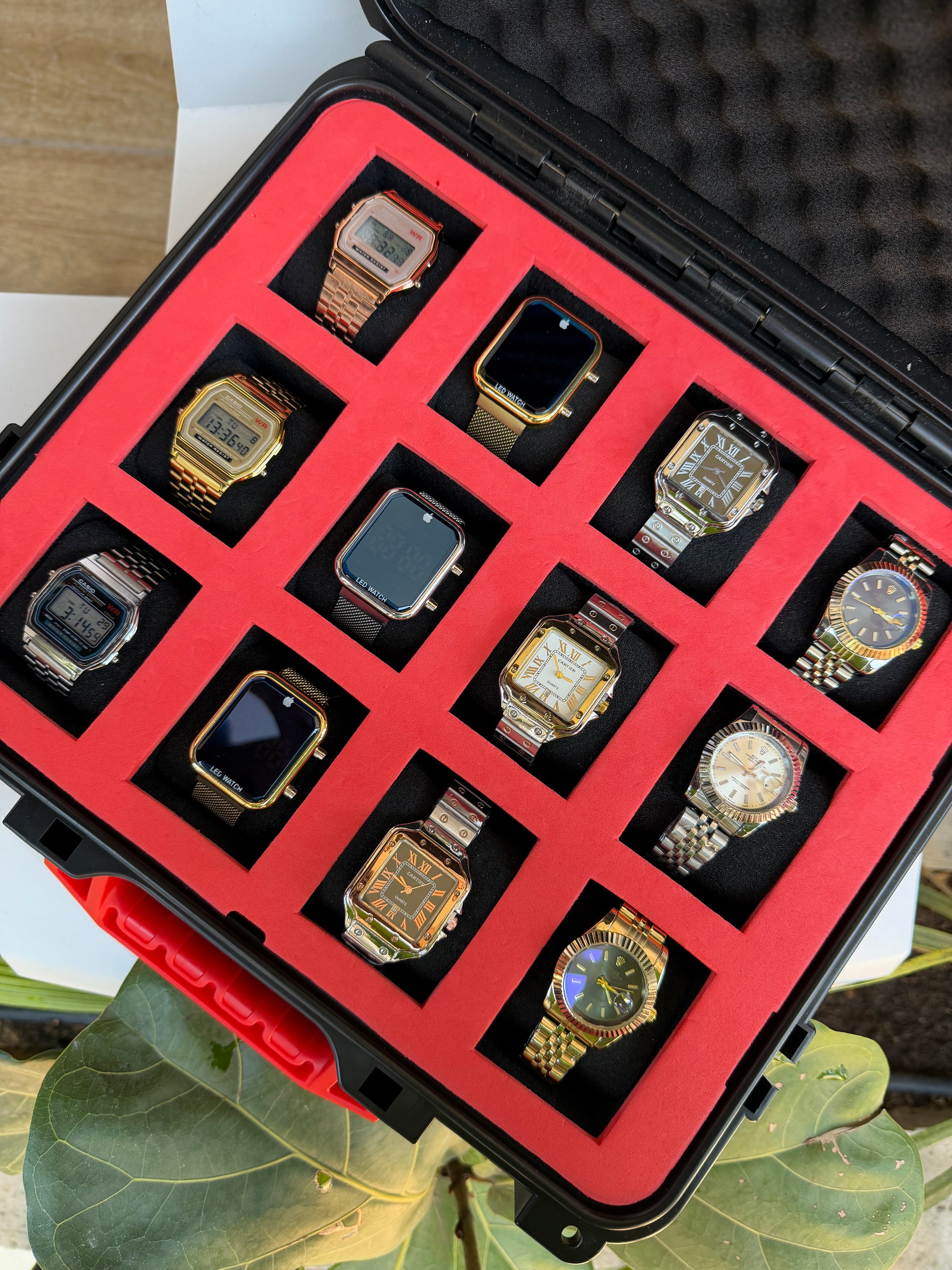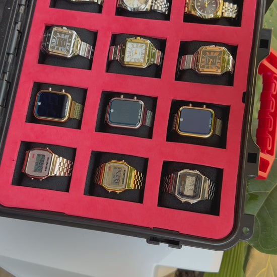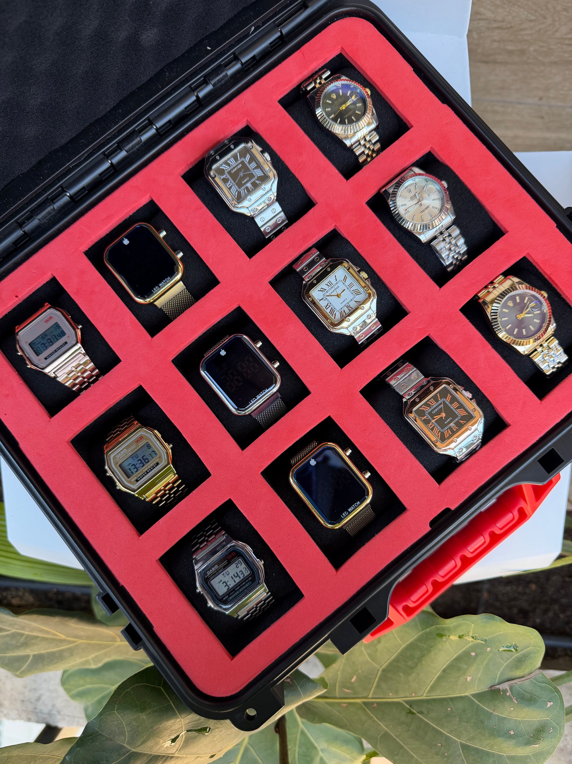 Relojeras se venden a parte (la categoría se llama relojeras y ahí están todas las disponibles para añadir a tu compra según la cantidad de relojes en el combo)