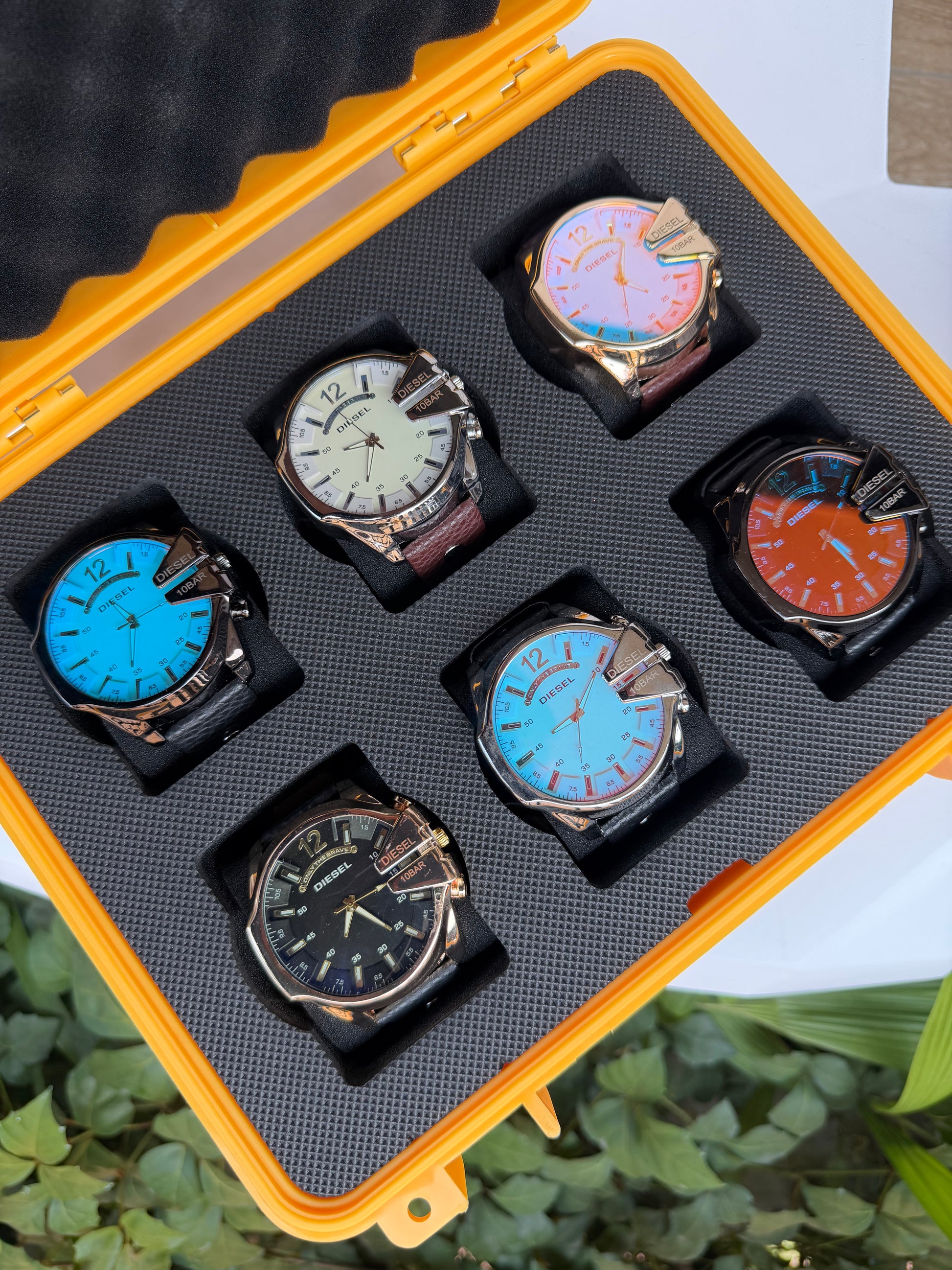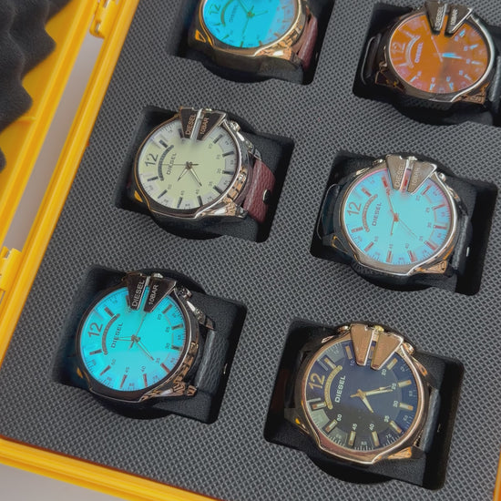 Relojeras se venden a parte (la categoría se llama relojeras y ahí están todas las disponibles para añadir a tu compra según la cantidad de relojes en el combo)