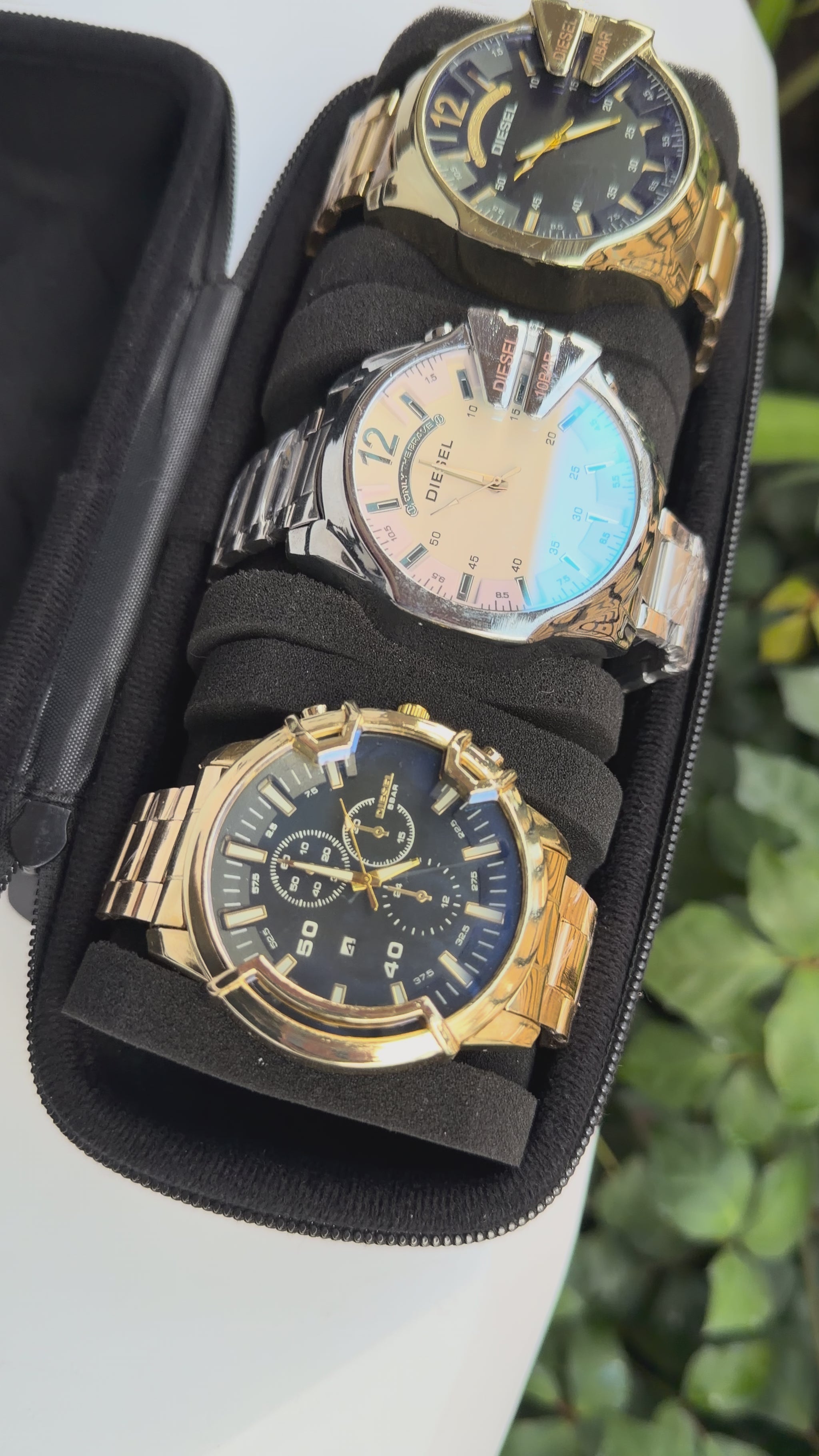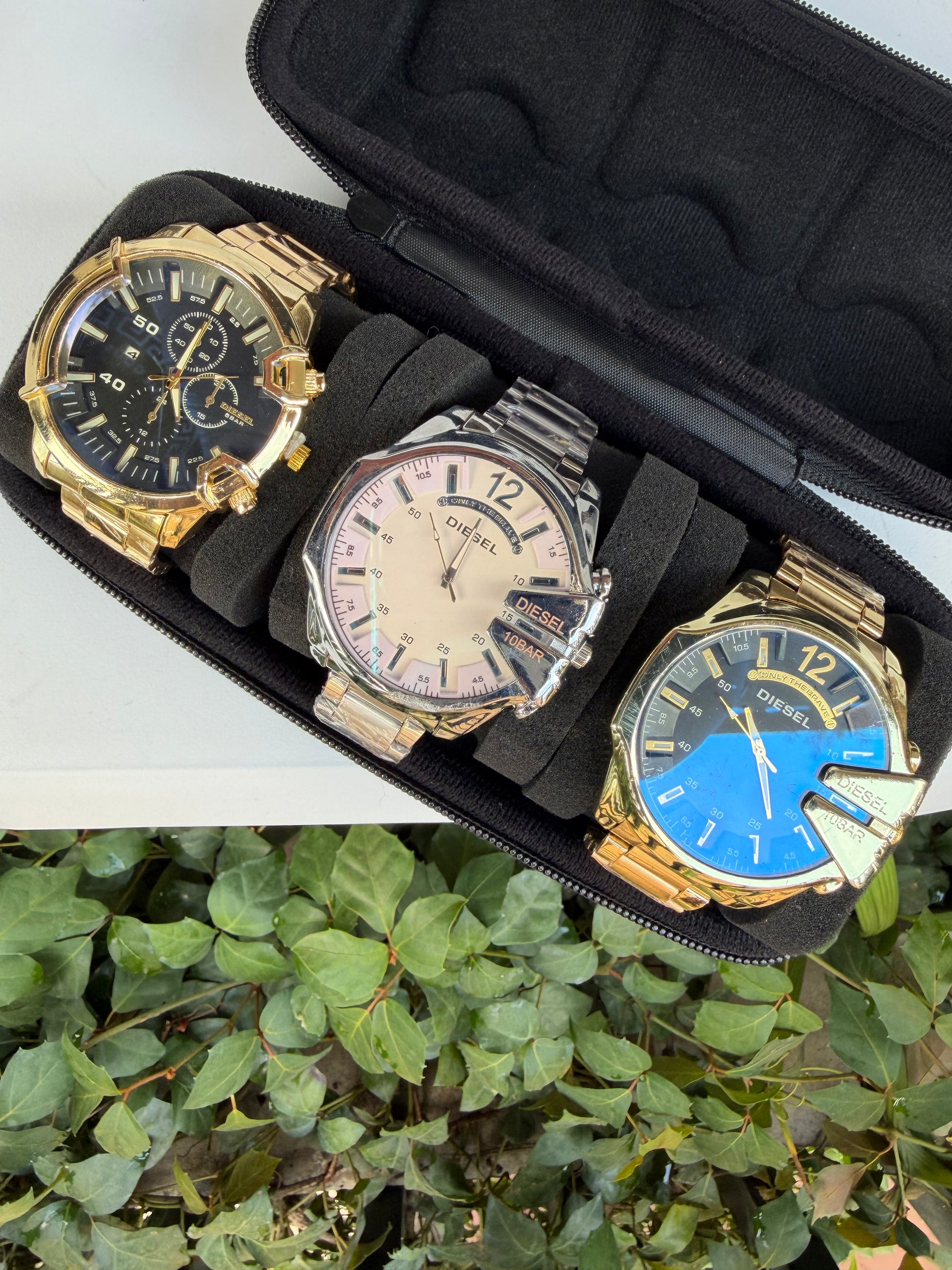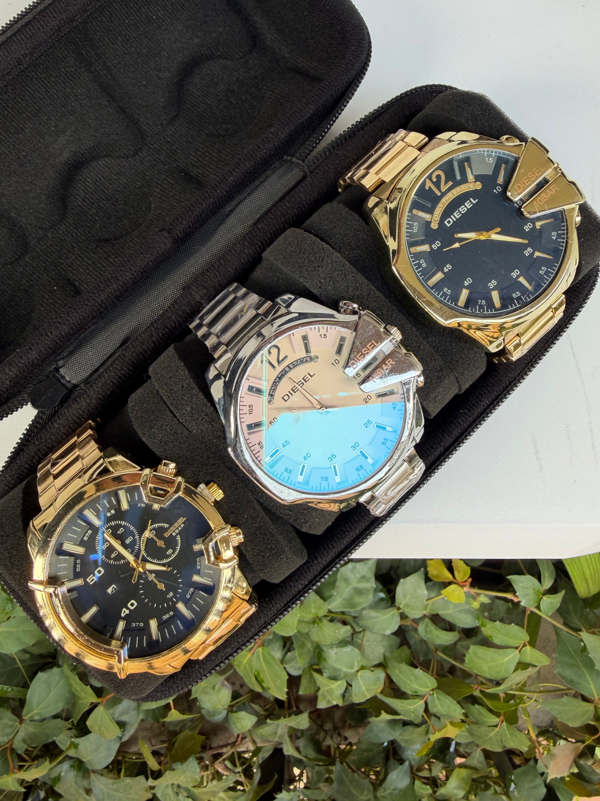 Relojeras se venden a parte (la categoría se llama relojeras y ahí están todas las disponibles para añadir a tu compra según la cantidad de relojes en el combo)