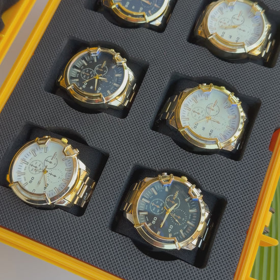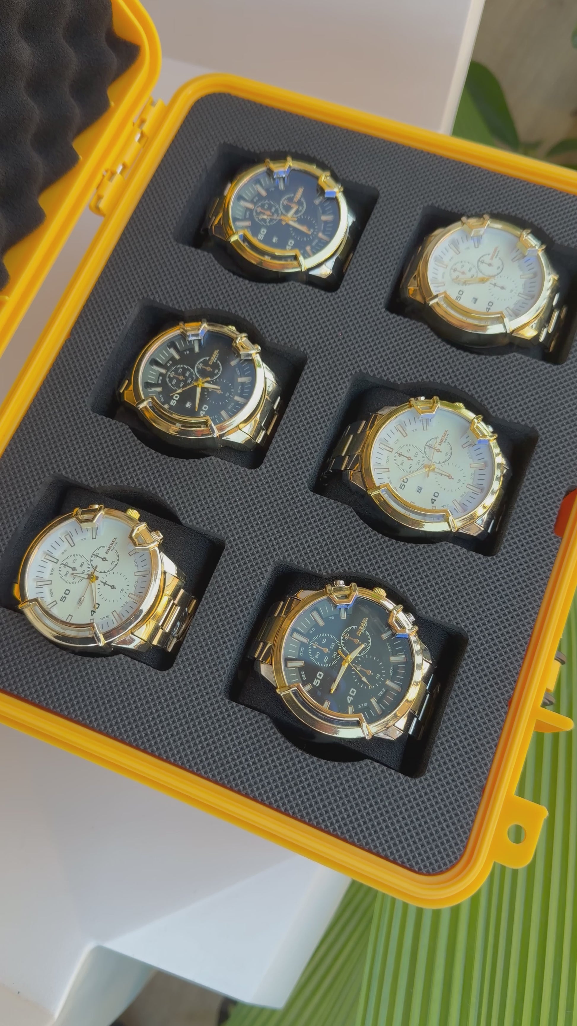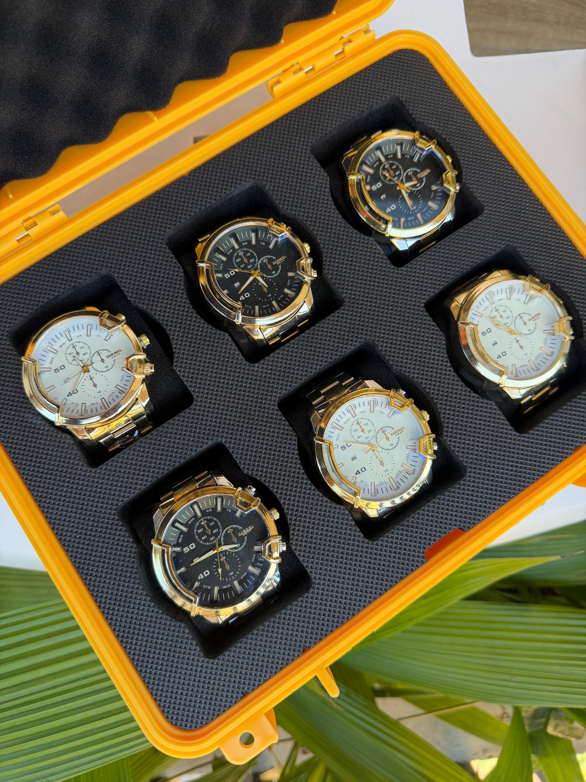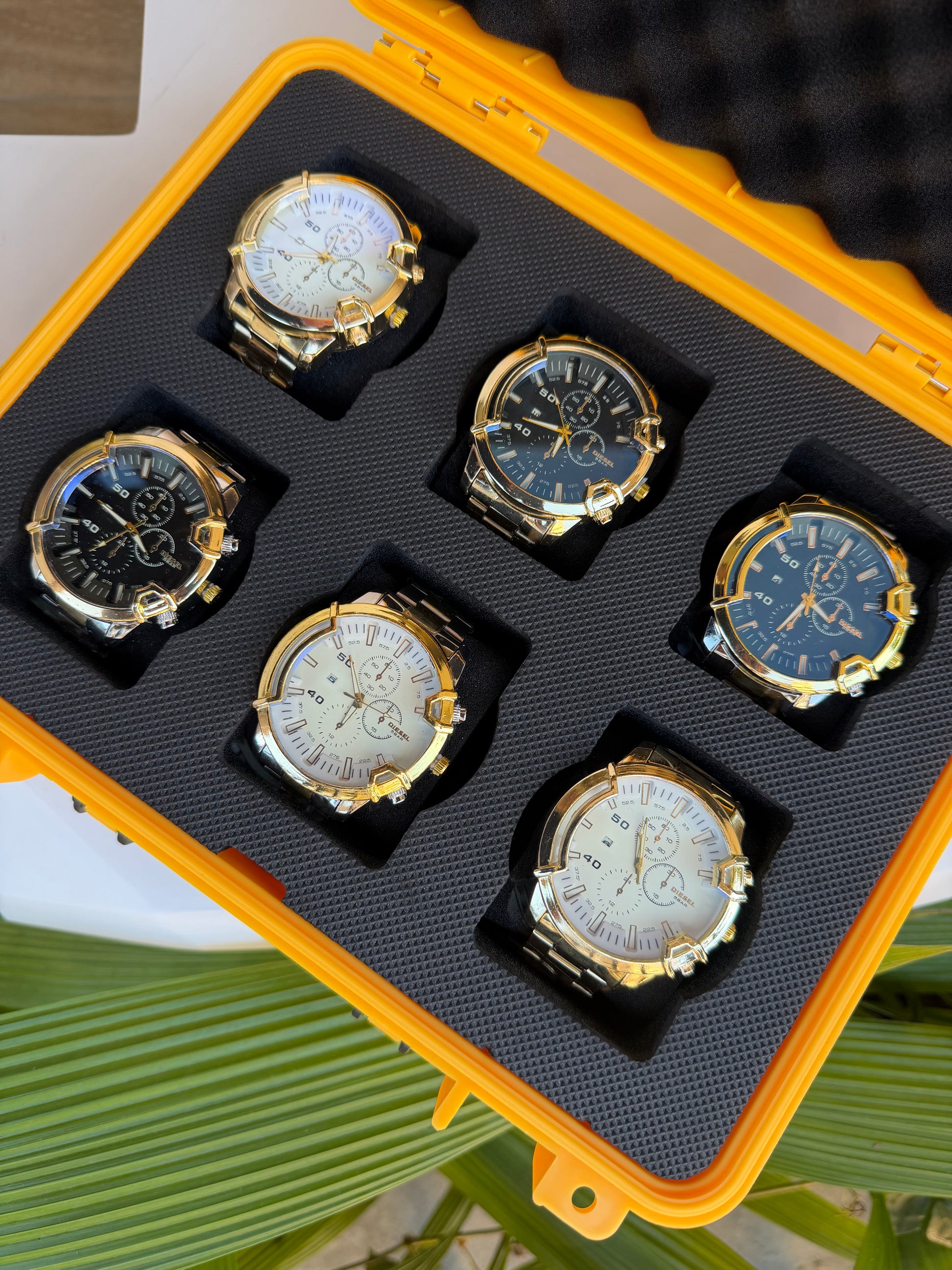 Relojeras se venden a parte (la categoría se llama relojeras y ahí están todas las disponibles para añadir a tu compra según la cantidad de relojes en el combo)