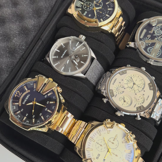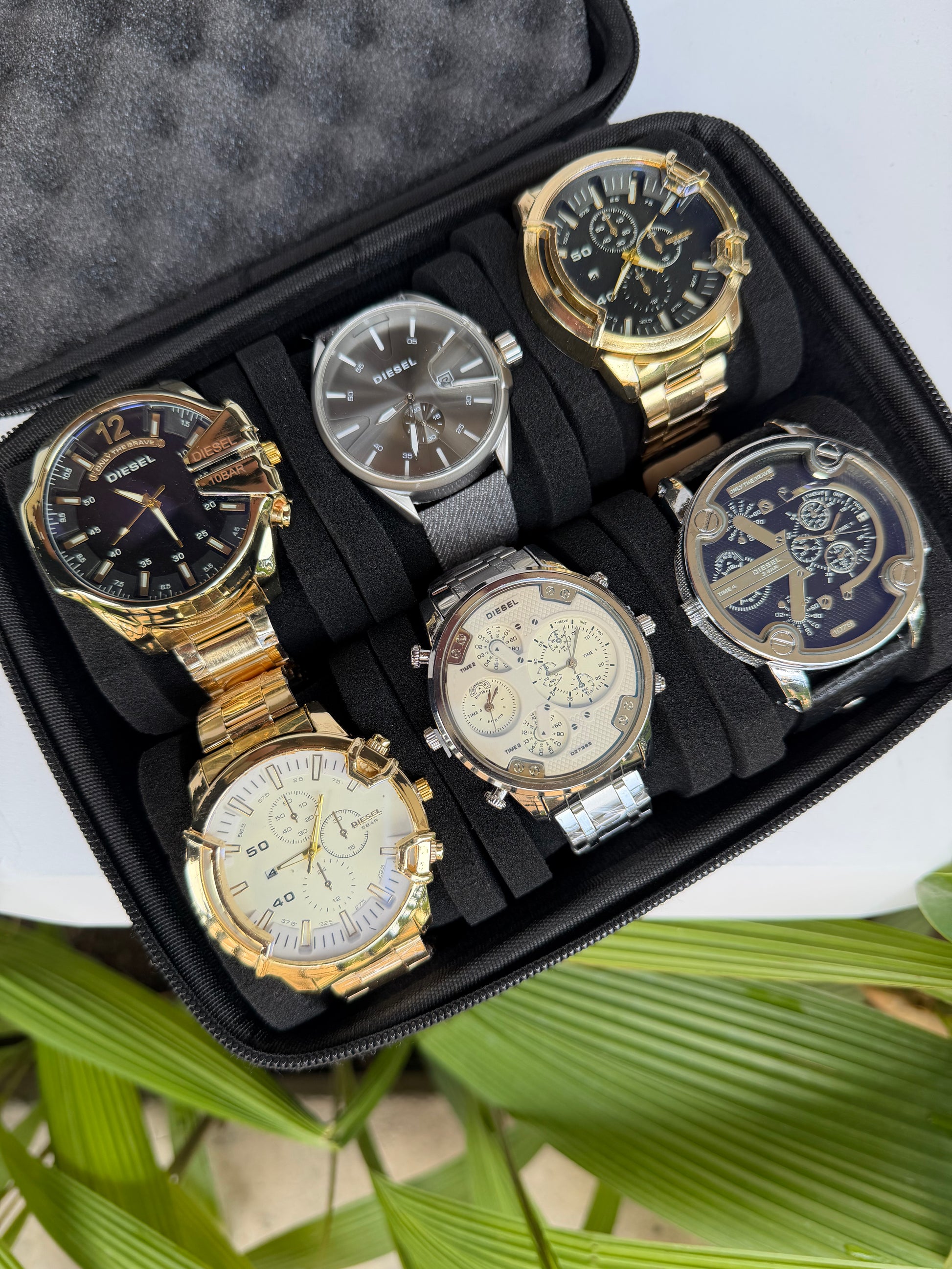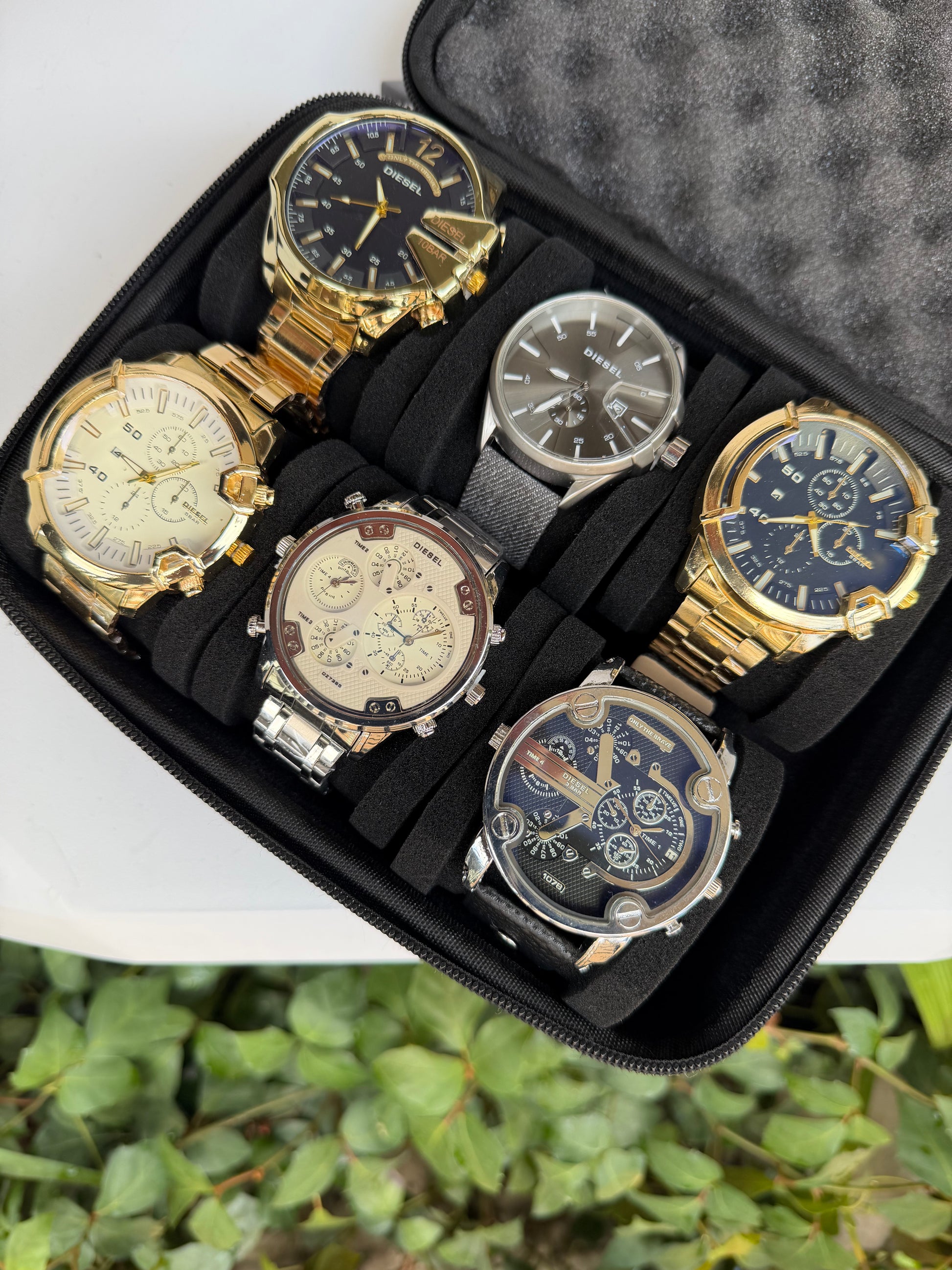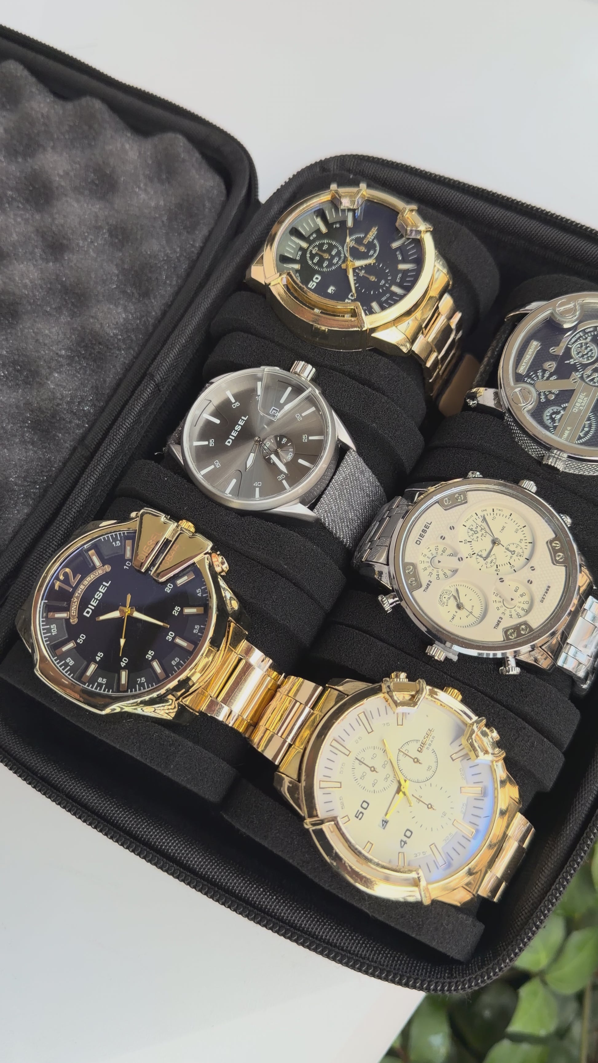 Relojeras se venden a parte (la categoría se llama relojeras y ahí están todas las disponibles para añadir a tu compra según la cantidad de relojes en el combo)