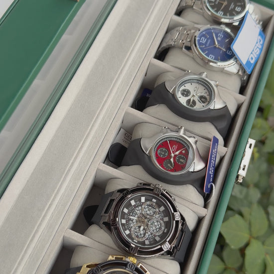 Relojeras se venden a parte (la categoría se llama relojeras y ahí están todas las disponibles para añadir a tu compra según la cantidad de relojes en el combo)