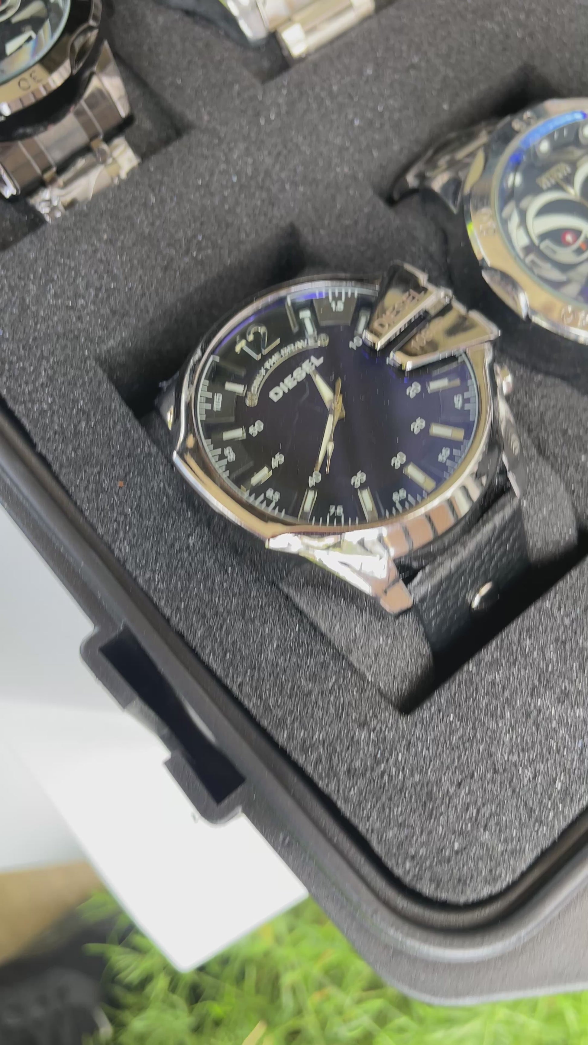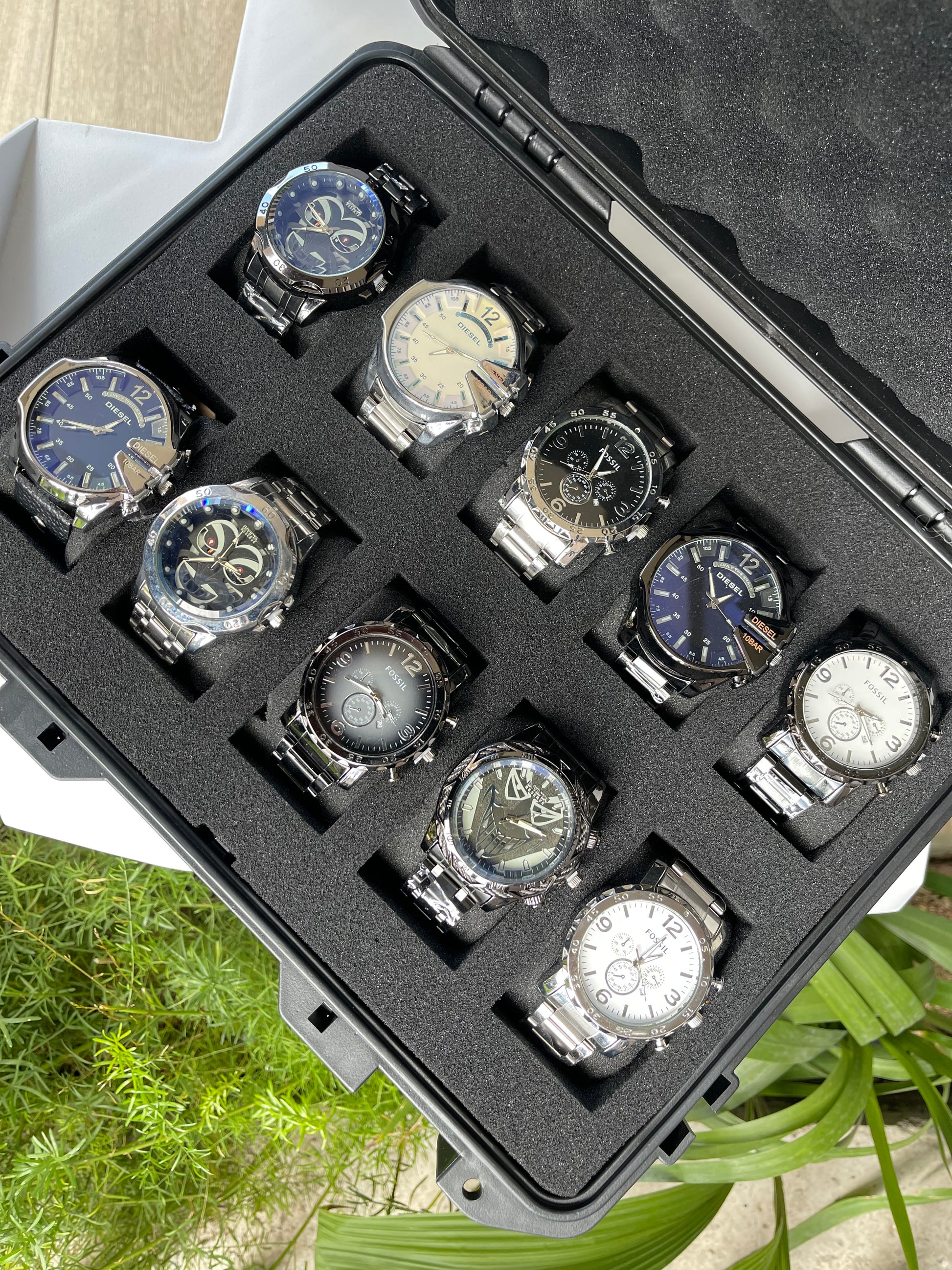 Relojeras se venden a parte (la categoría se llama relojeras y ahí están todas las disponibles para añadir a tu compra según la cantidad de relojes en el combo)