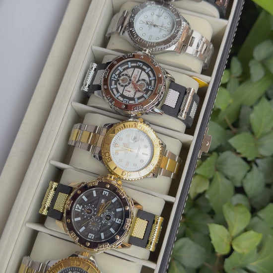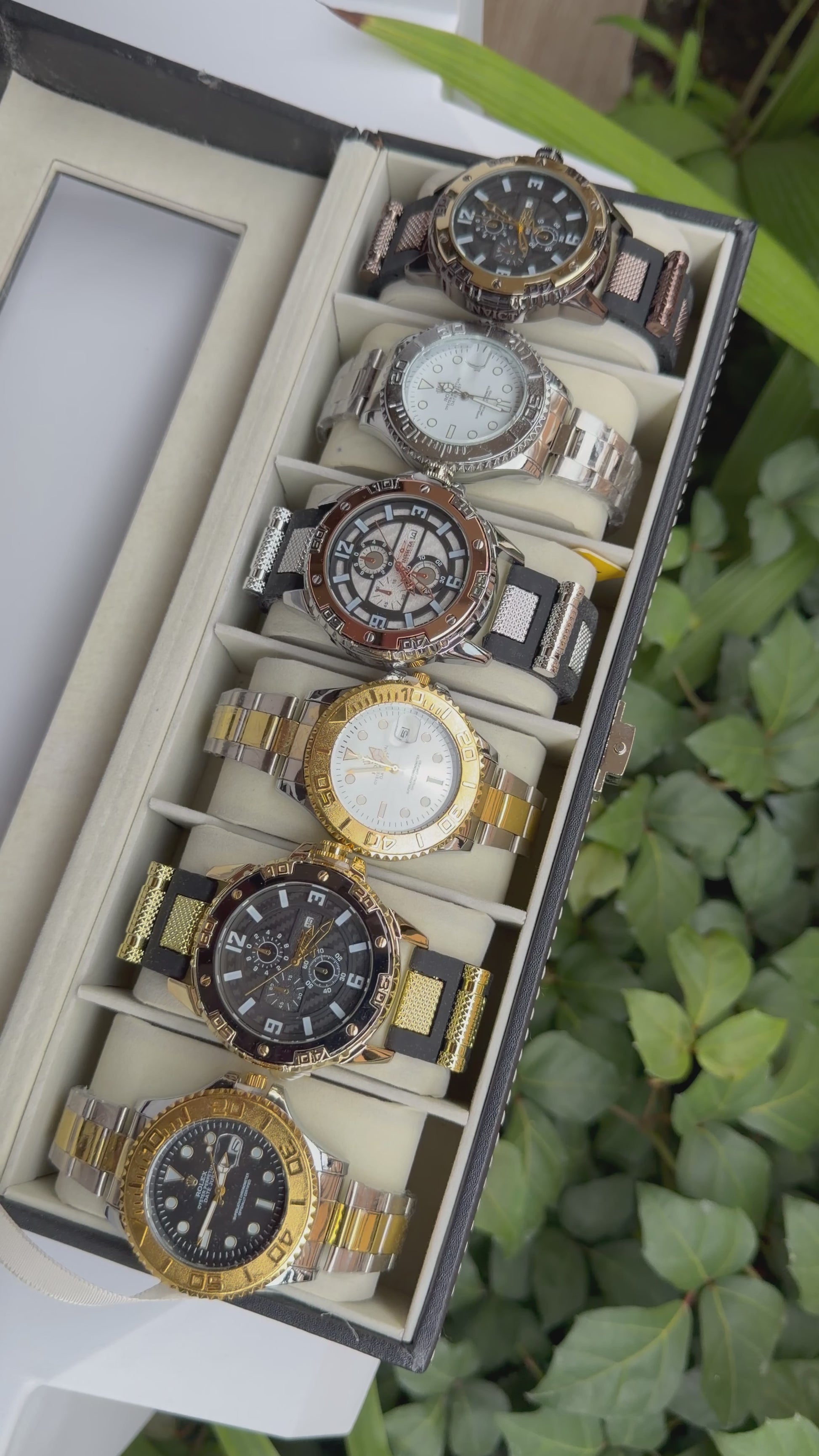 Relojeras se venden a parte (la categoría se llama relojeras y ahí están todas las disponibles para añadir a tu compra según la cantidad de relojes en el combo)