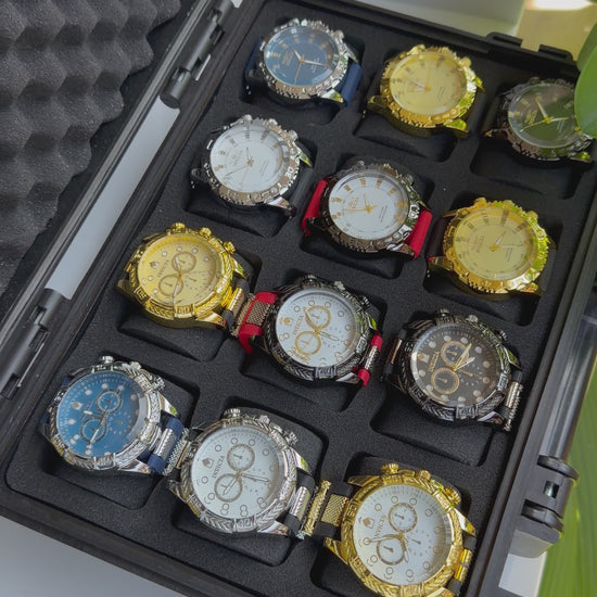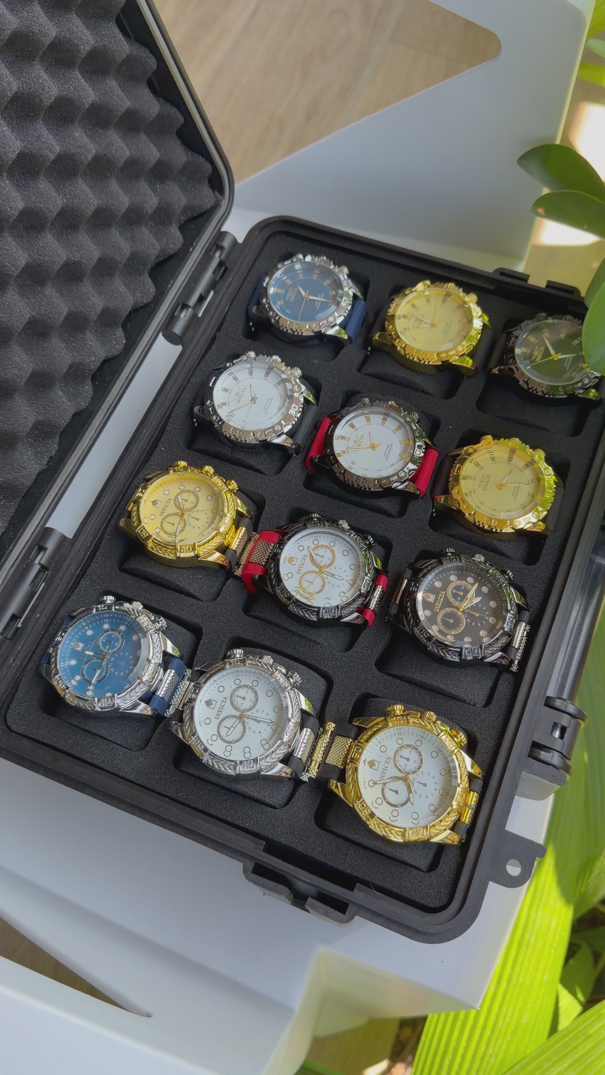 Relojeras se venden a parte (la categoría se llama relojeras y ahí están todas las disponibles para añadir a tu compra según la cantidad de relojes en el combo)
