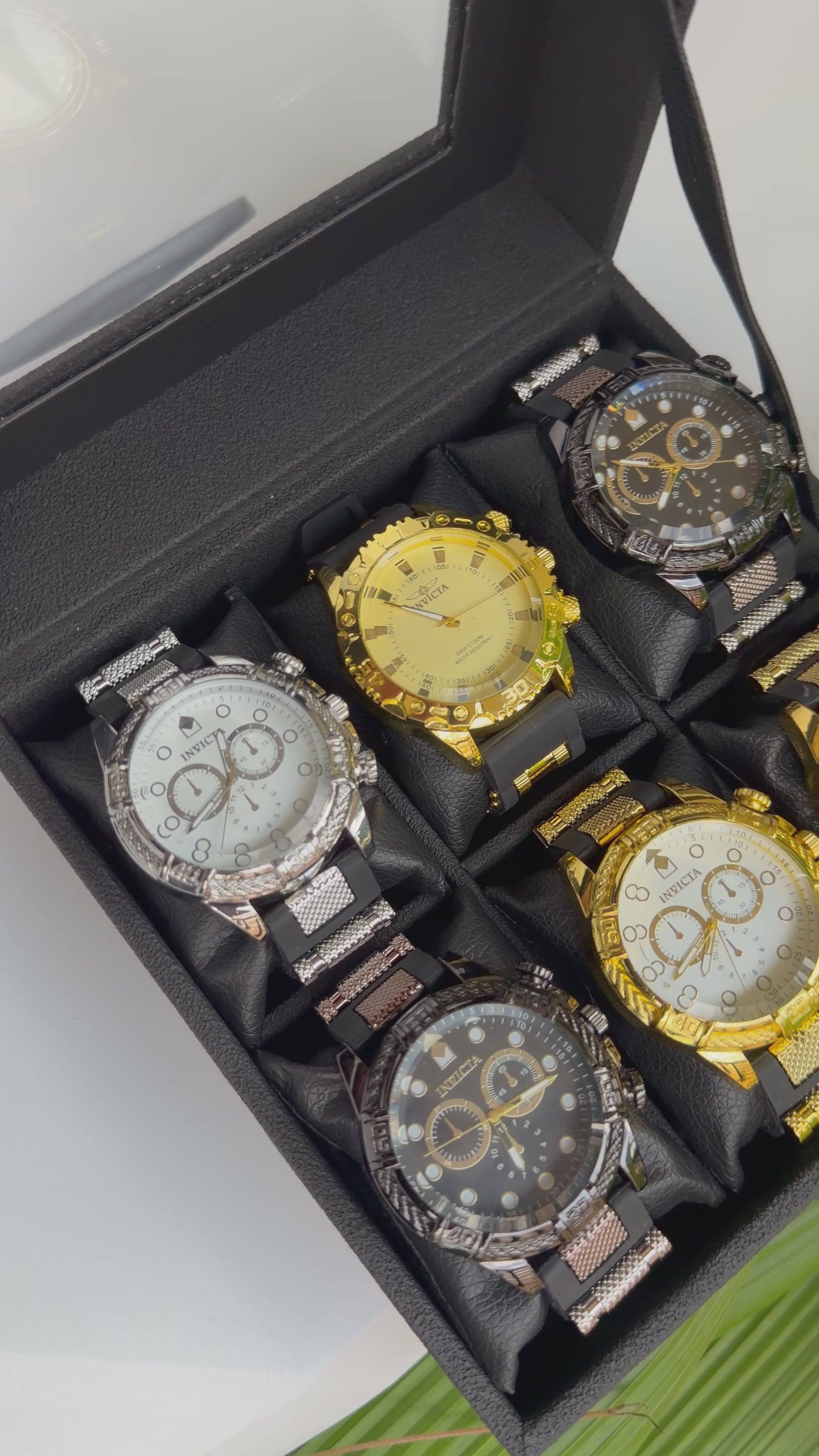 Relojeras se venden a parte (la categoría se llama relojeras y ahí están todas las disponibles para añadir a tu compra según la cantidad de relojes en el combo)