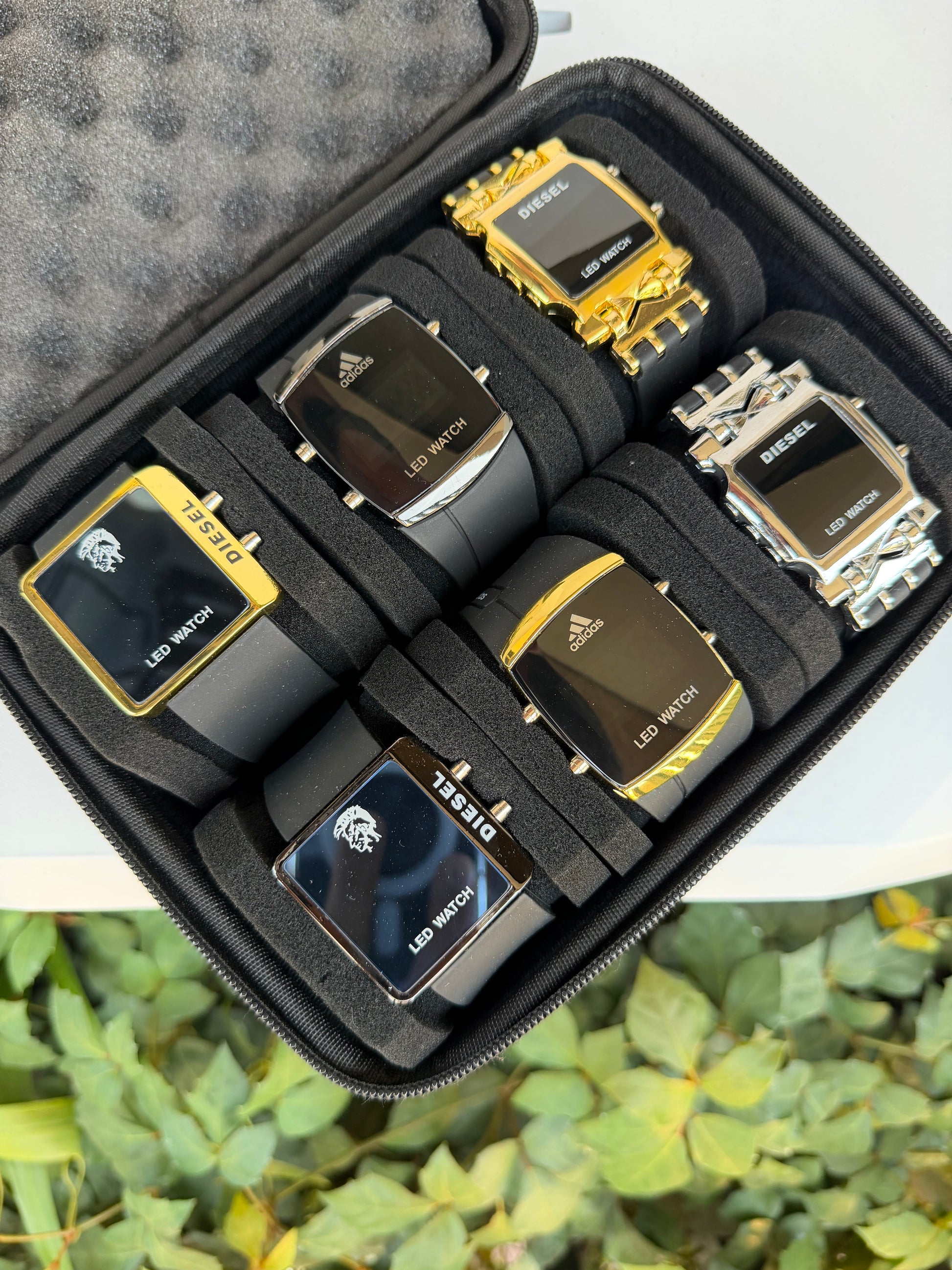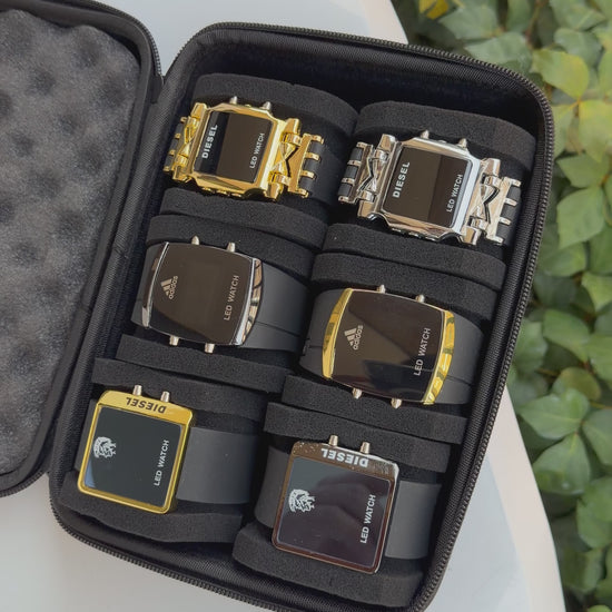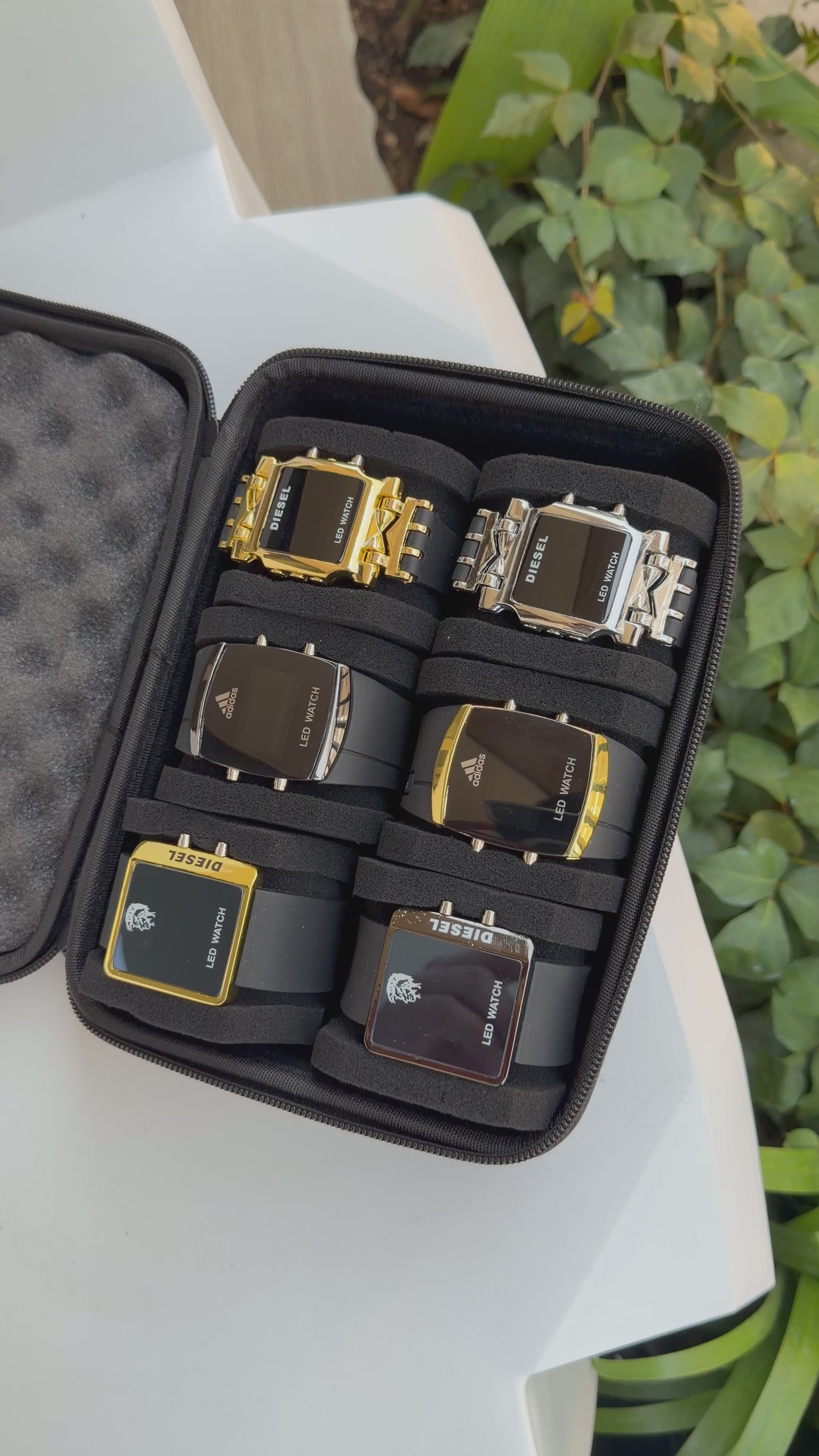 Relojeras se venden a parte (la categoría se llama relojeras y ahí están todas las disponibles para añadir a tu compra según la cantidad de relojes en el combo)