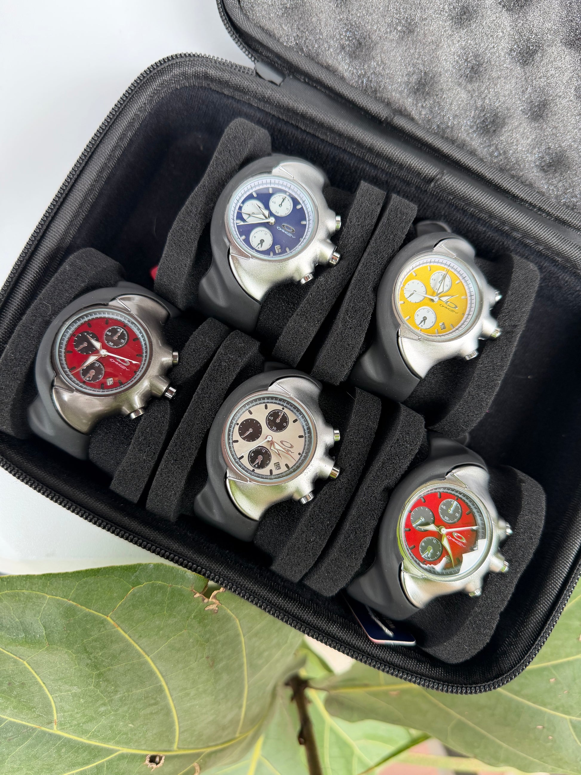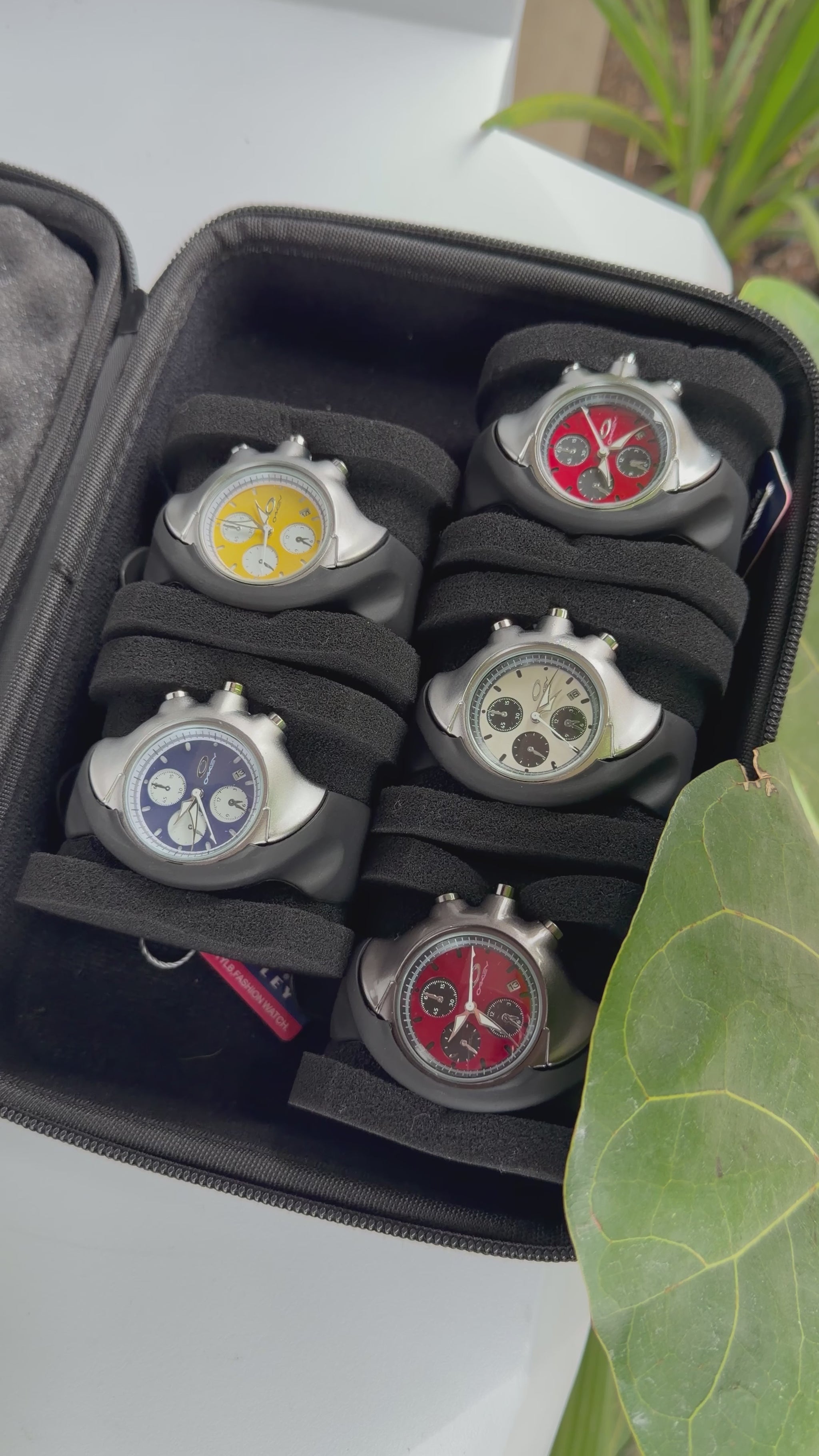 Relojeras se venden a parte (la categoría se llama relojeras y ahí están todas las disponibles para añadir a tu compra según la cantidad de relojes en el combo)