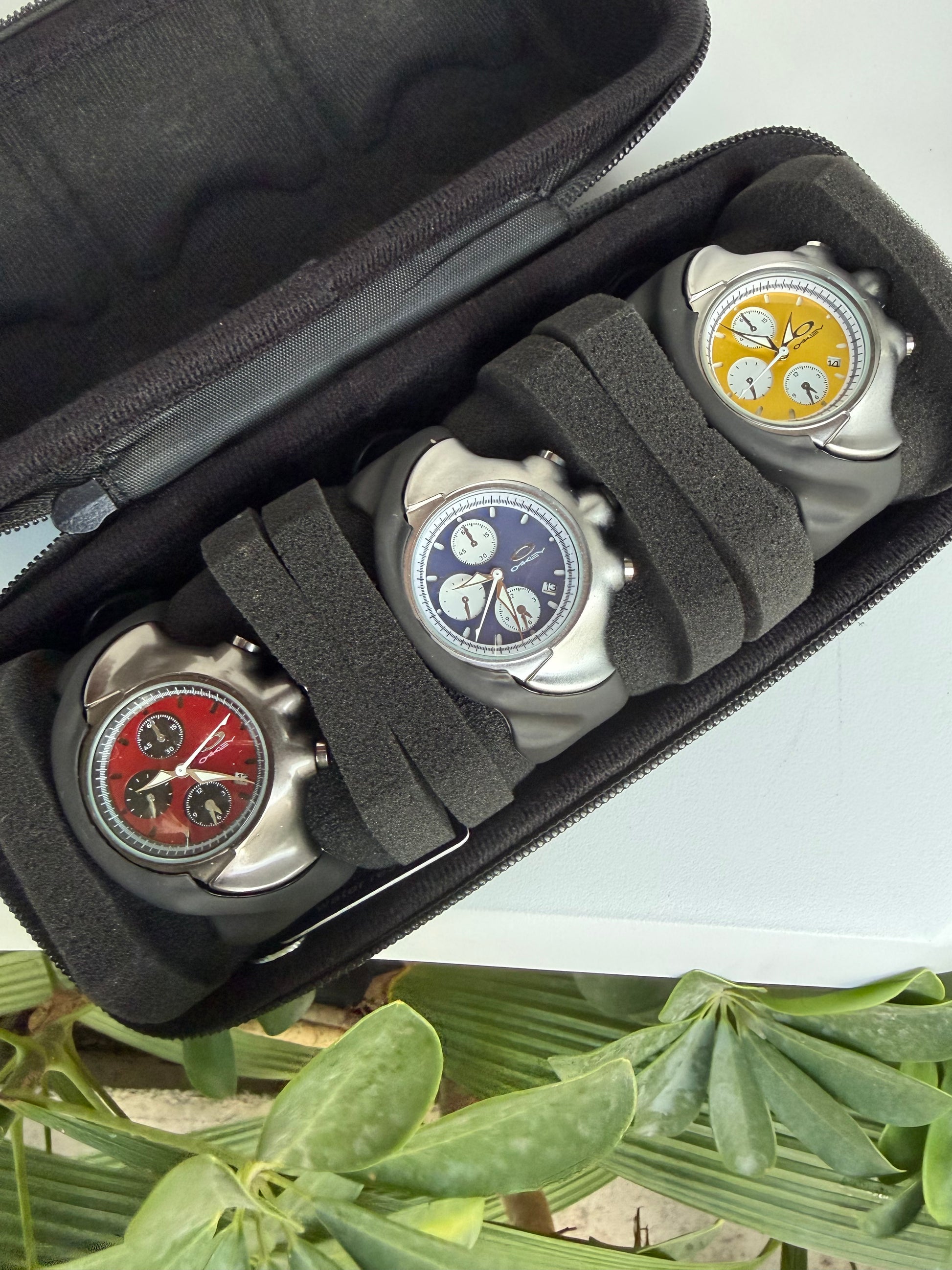 Relojeras se venden a parte (la categoría se llama relojeras y ahí están todas las disponibles para añadir a tu compra según la cantidad de relojes en el combo)