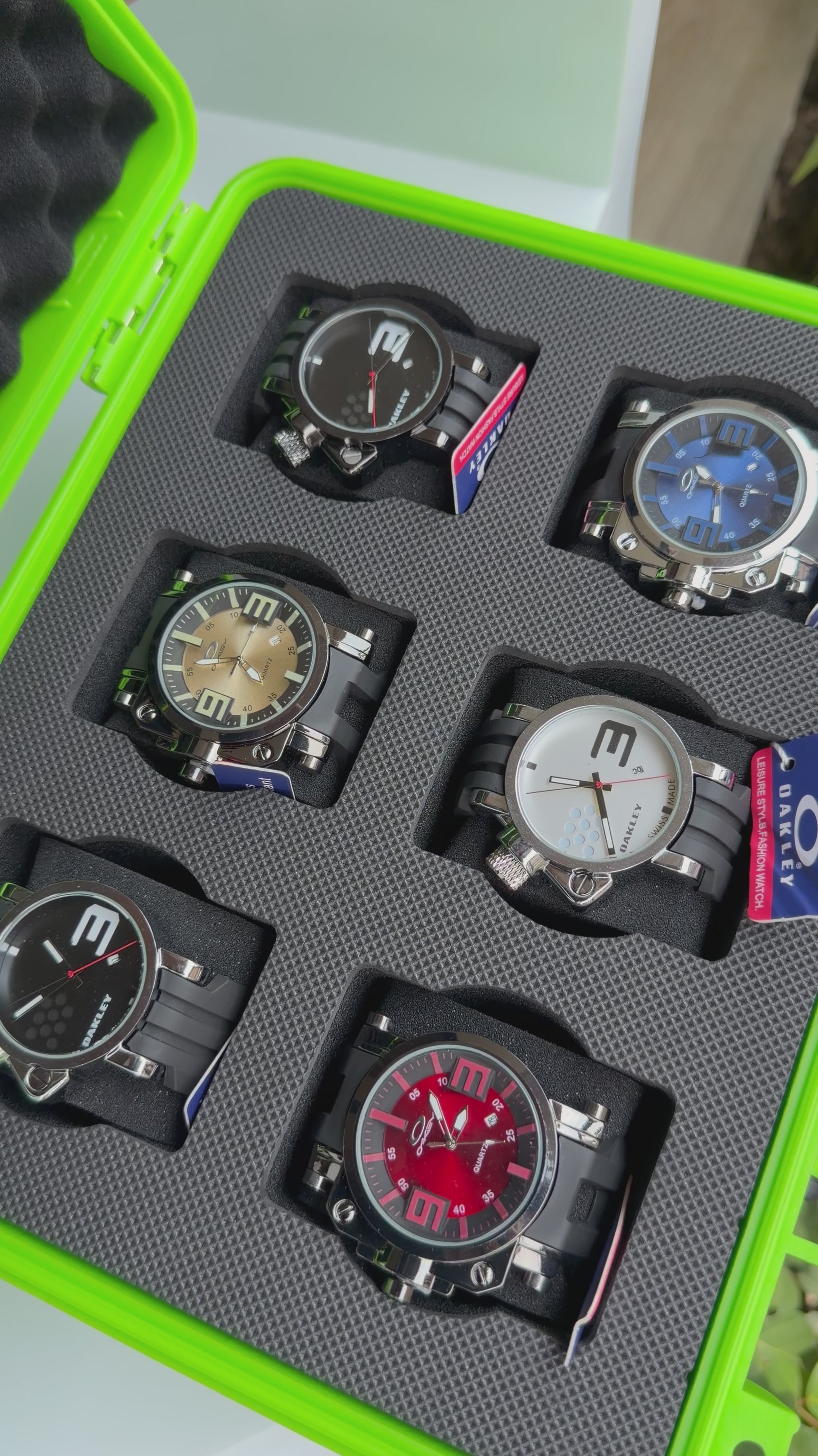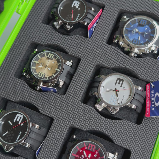 Relojeras se venden a parte (la categoría se llama relojeras y ahí están todas las disponibles para añadir a tu compra según la cantidad de relojes en el combo)