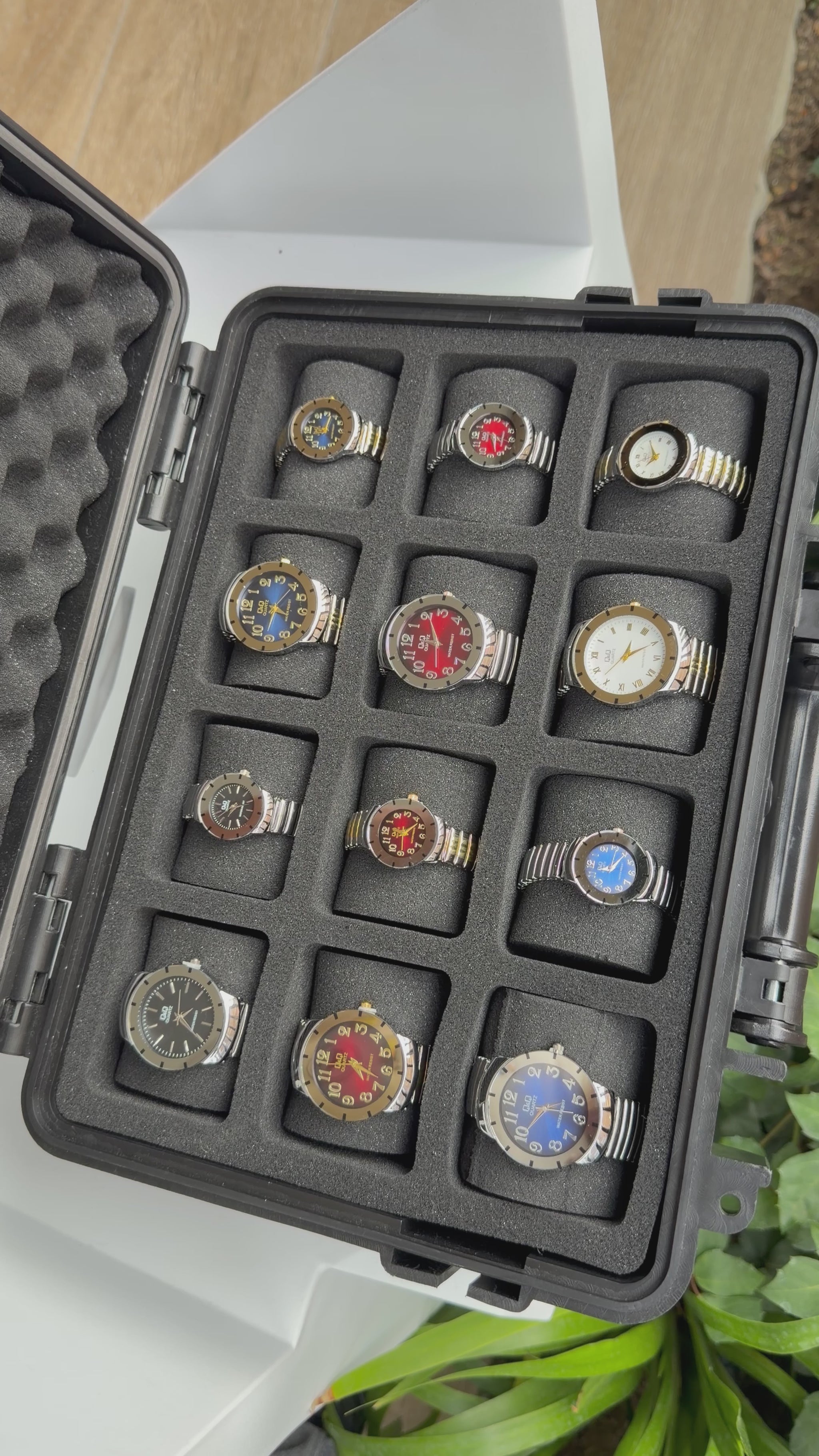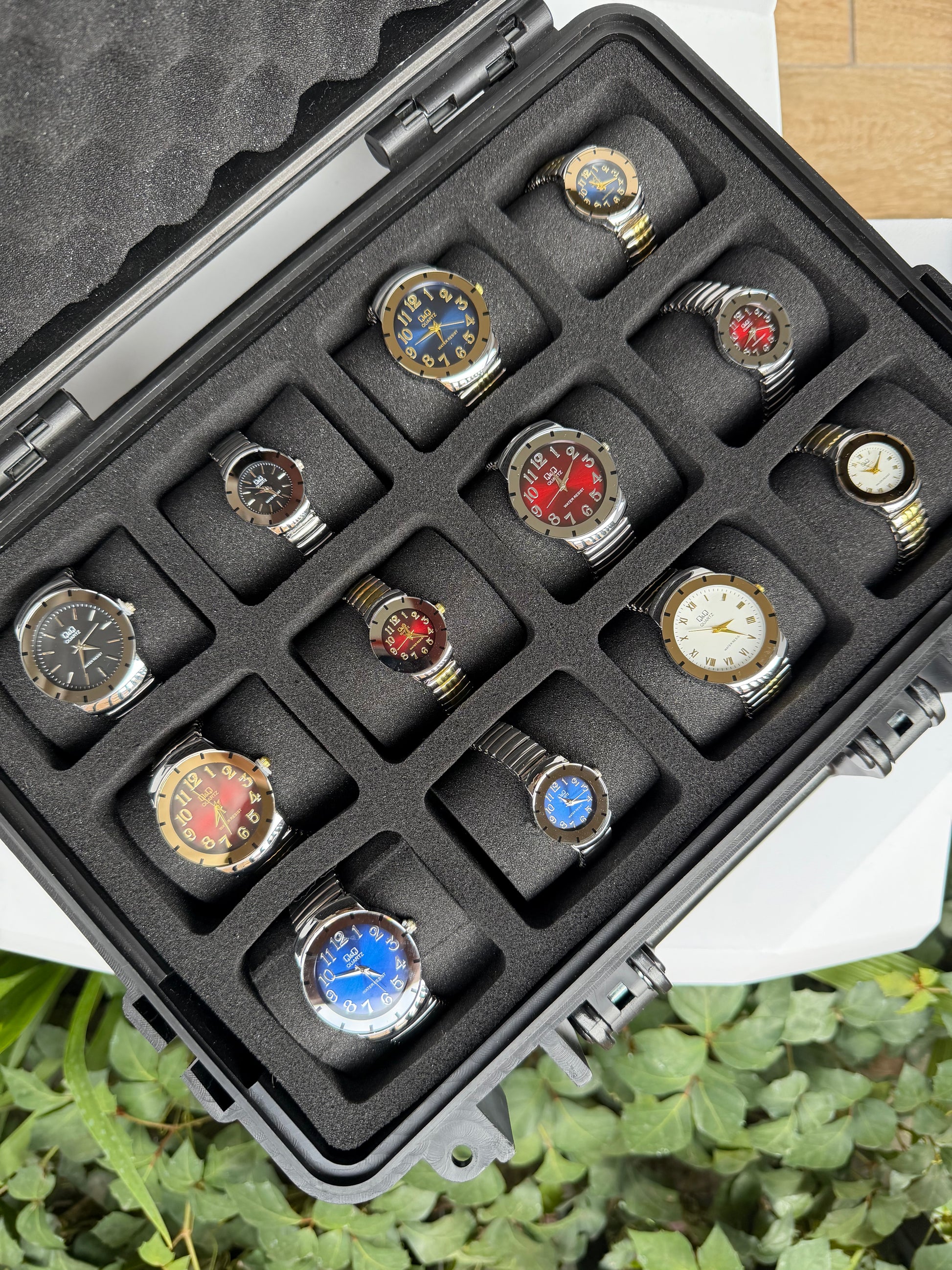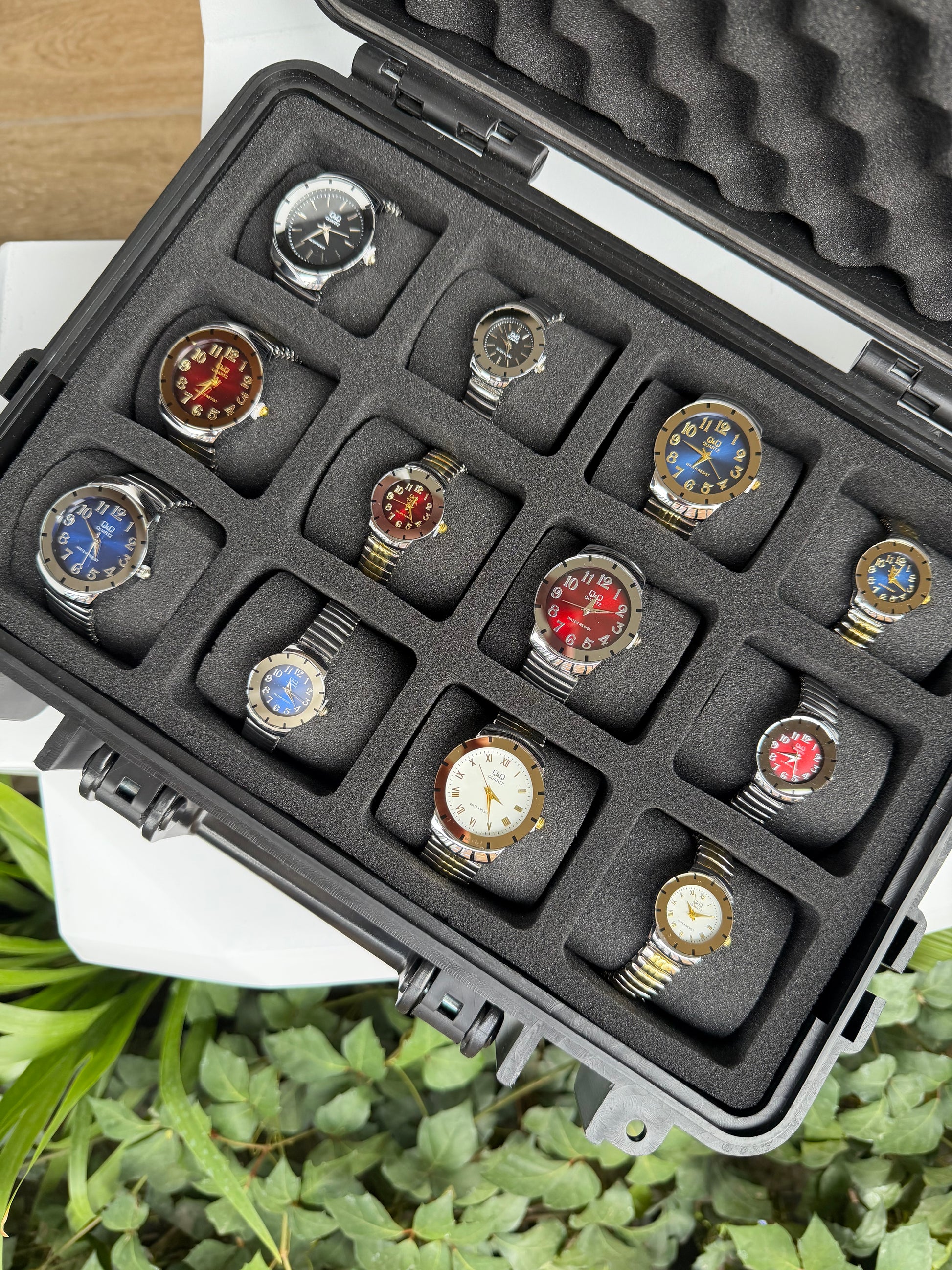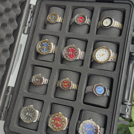 Relojeras se venden a parte (la categoría se llama relojeras y ahí están todas las disponibles para añadir a tu compra según la cantidad de relojes en el combo)