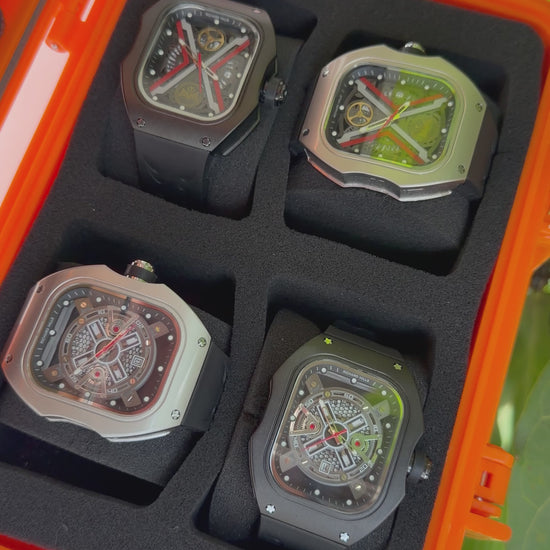 Relojeras se venden a parte (la categoría se llama relojeras y ahí están todas las disponibles para añadir a tu compra según la cantidad de relojes en el combo)