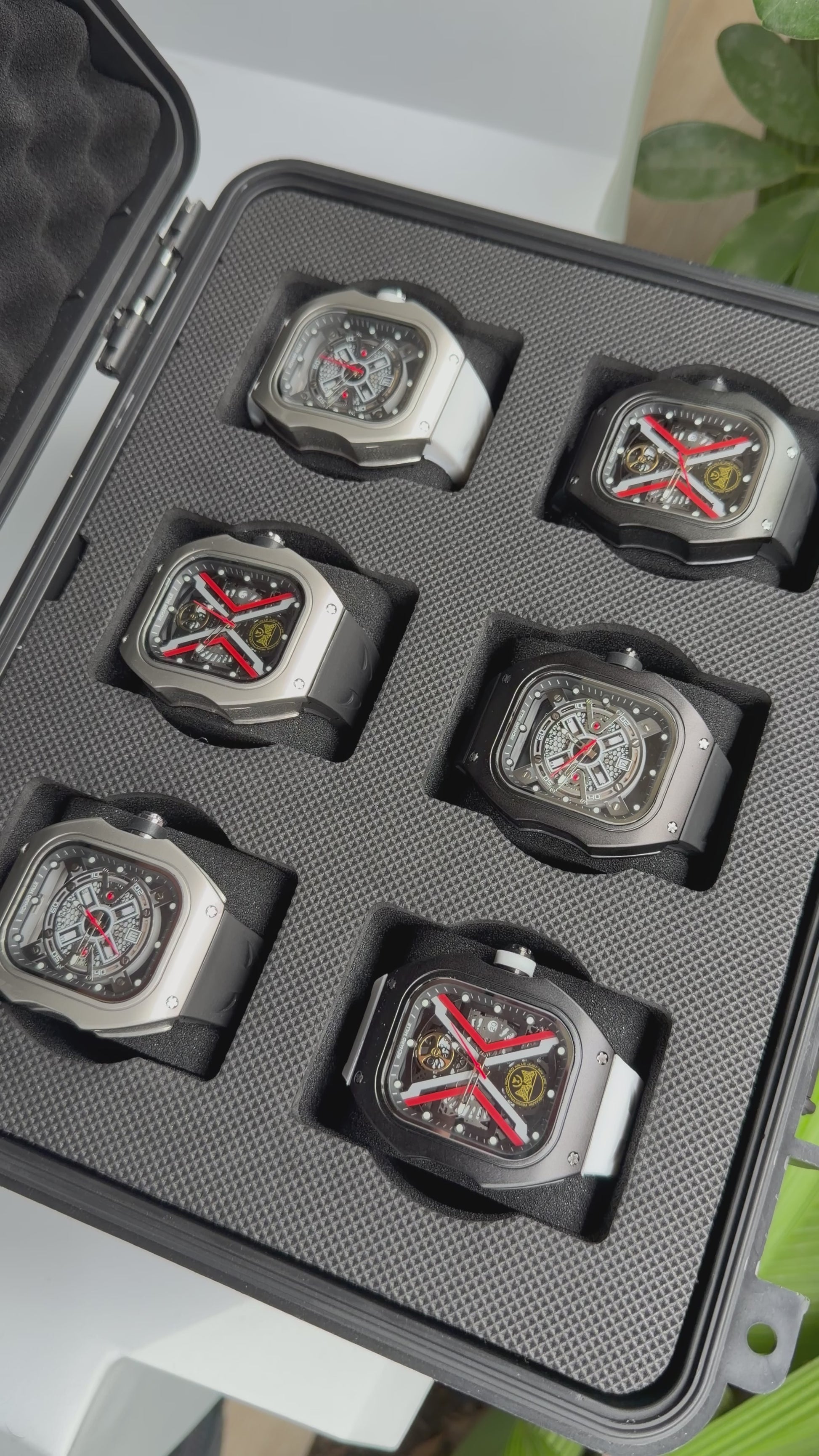 Relojeras se venden a parte (la categoría se llama relojeras y ahí están todas las disponibles para añadir a tu compra según la cantidad de relojes en el combo)