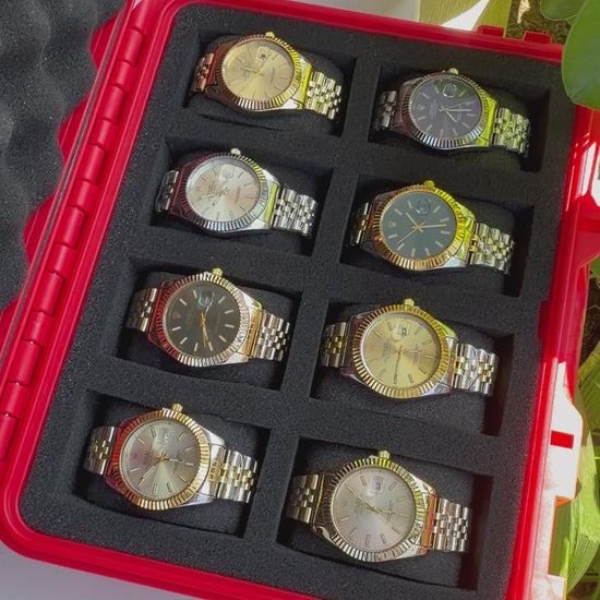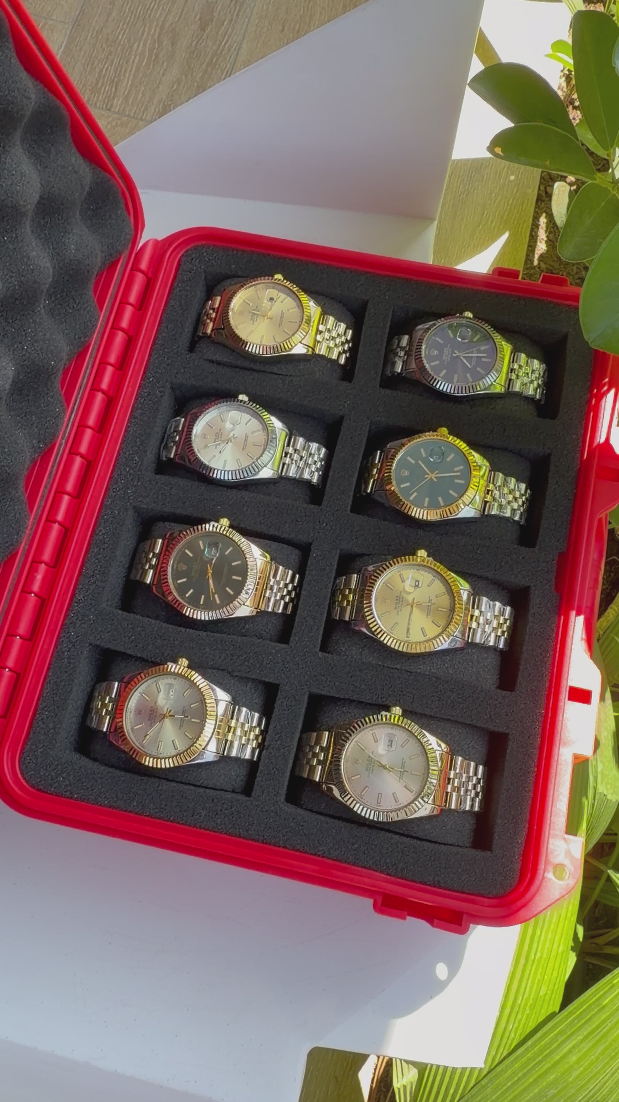 Relojeras se venden a parte (la categoría se llama relojeras y ahí están todas las disponibles para añadir a tu compra según la cantidad de relojes en el combo)