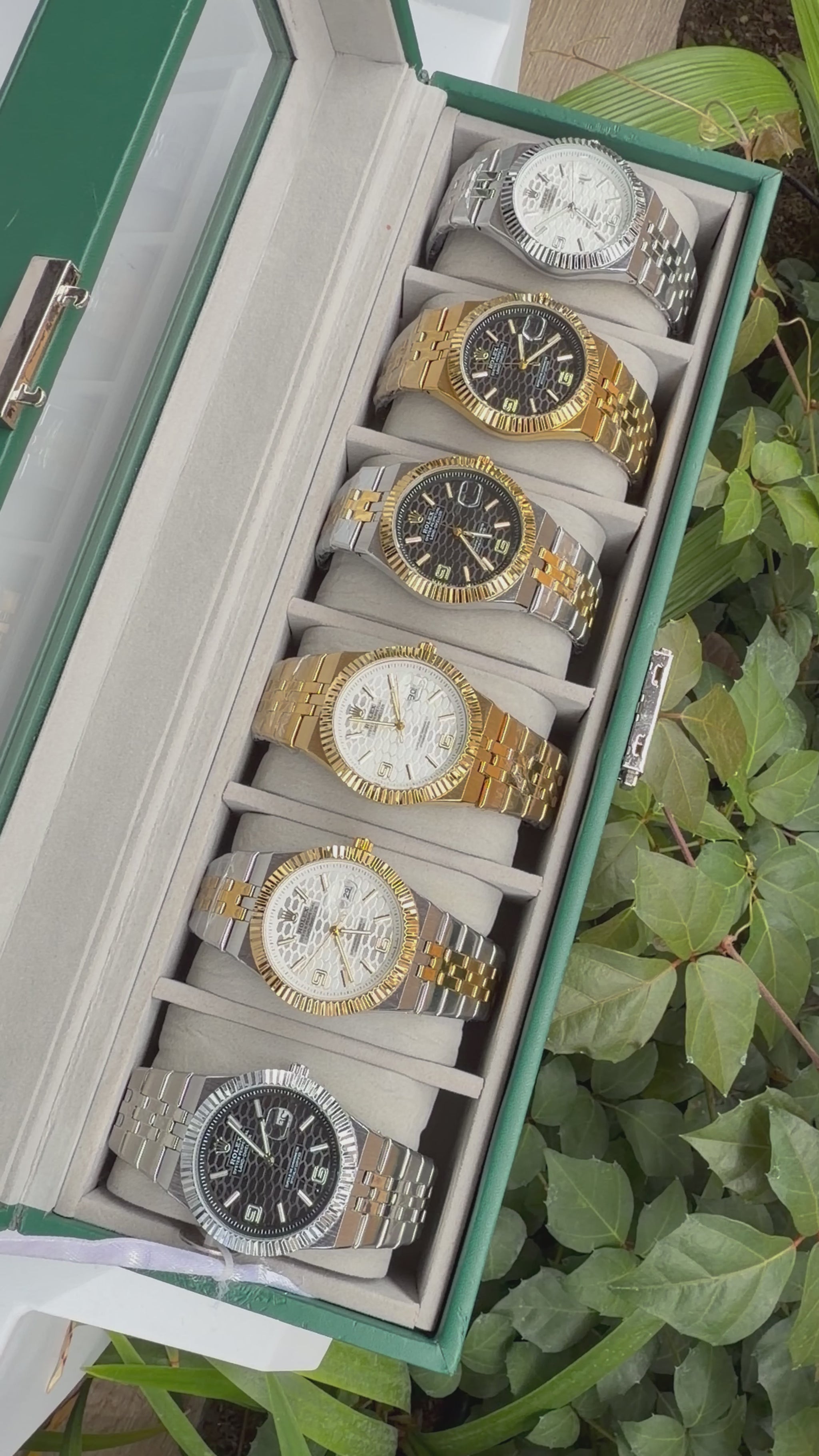 Relojeras se venden a parte (la categoría se llama relojeras y ahí están todas las disponibles para añadir a tu compra según la cantidad de relojes en el combo)
