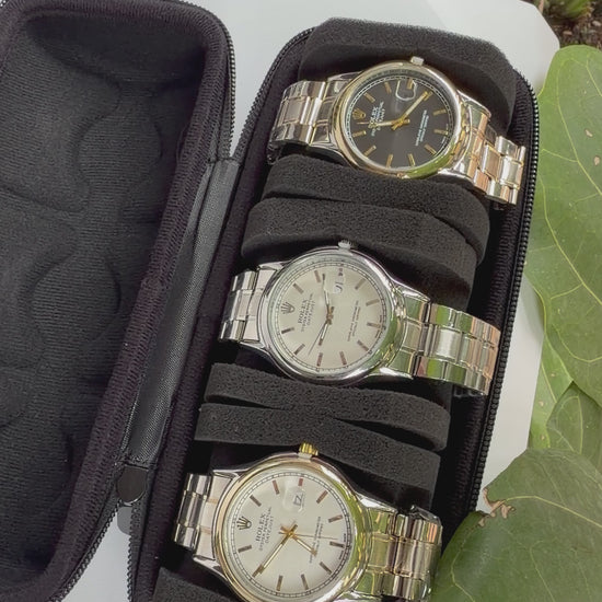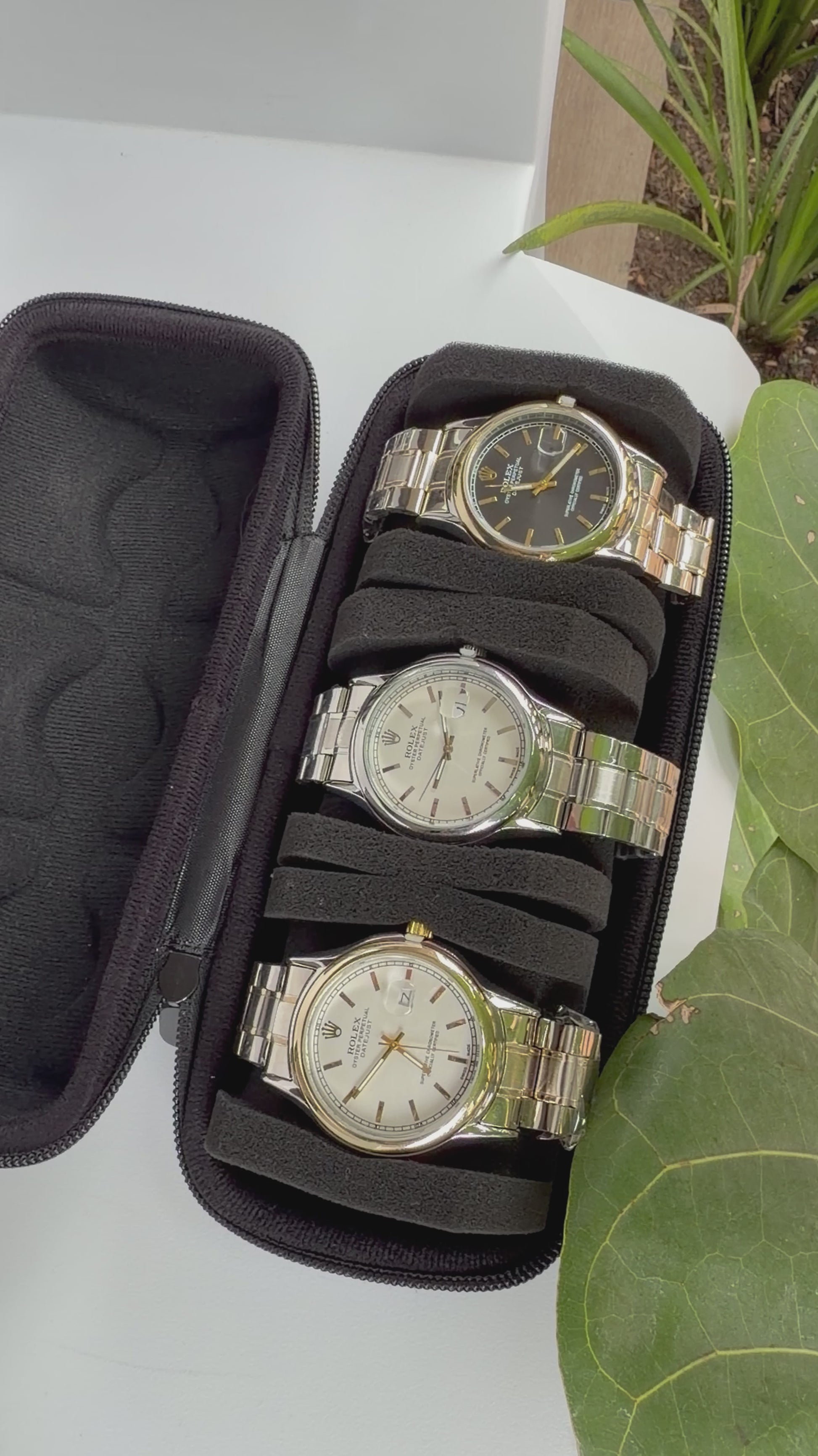 Relojeras se venden a parte (la categoría se llama relojeras y ahí están todas las disponibles para añadir a tu compra según la cantidad de relojes en el combo)
