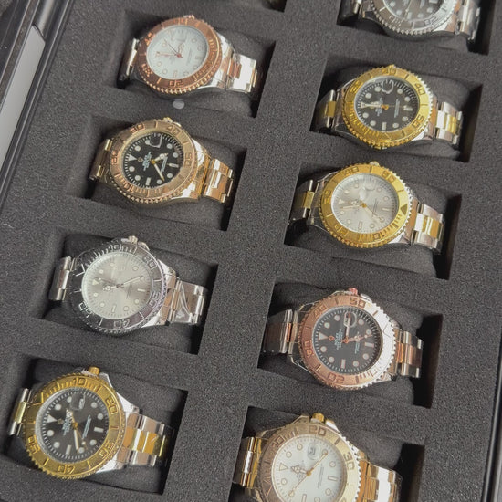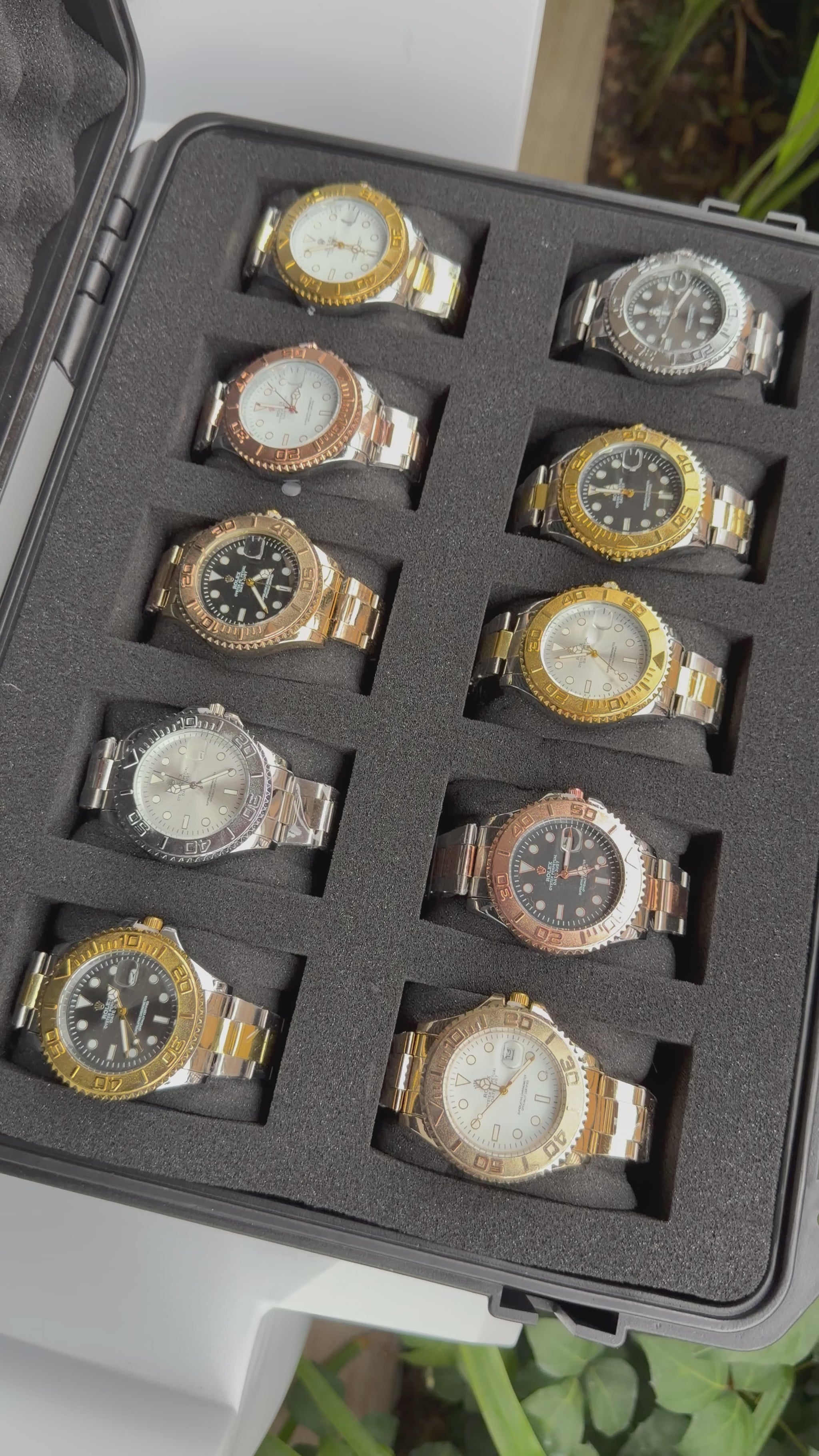 Relojeras se venden a parte (la categoría se llama relojeras y ahí están todas las disponibles para añadir a tu compra según la cantidad de relojes en el combo)