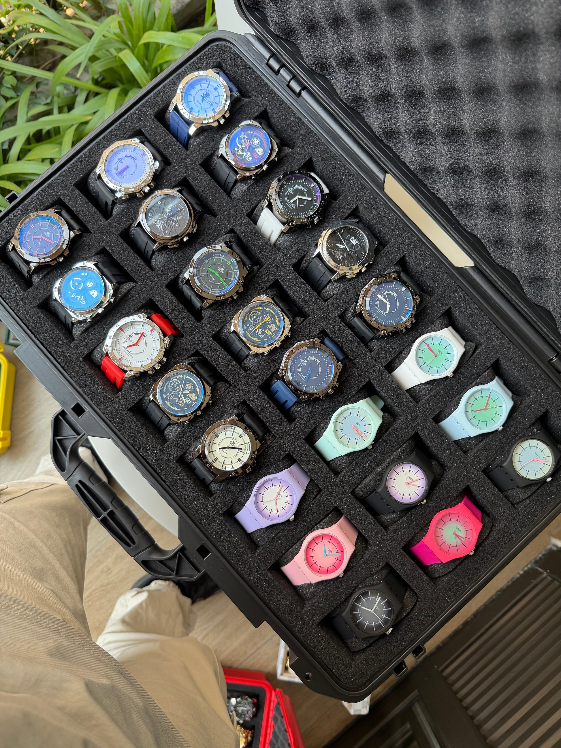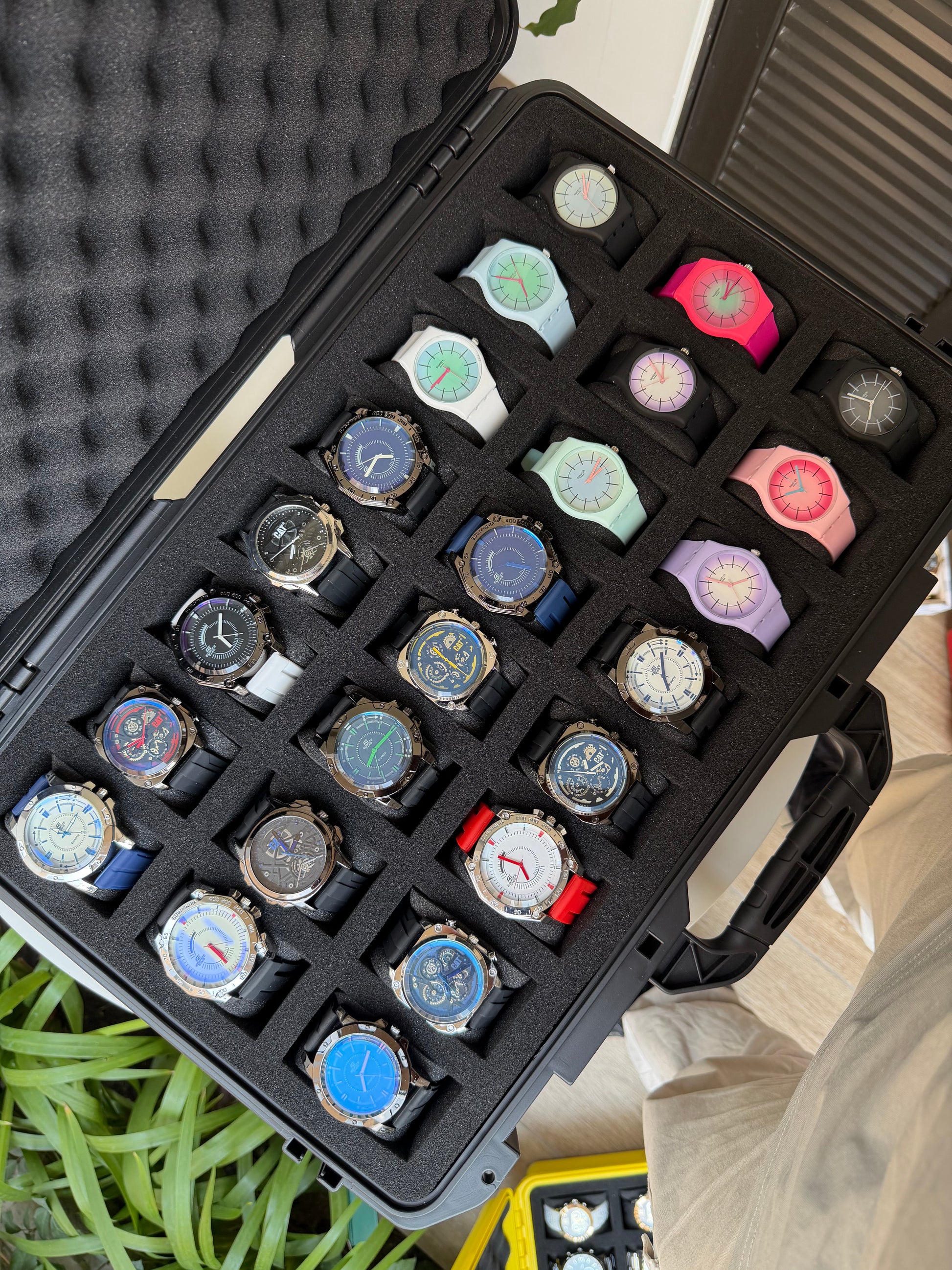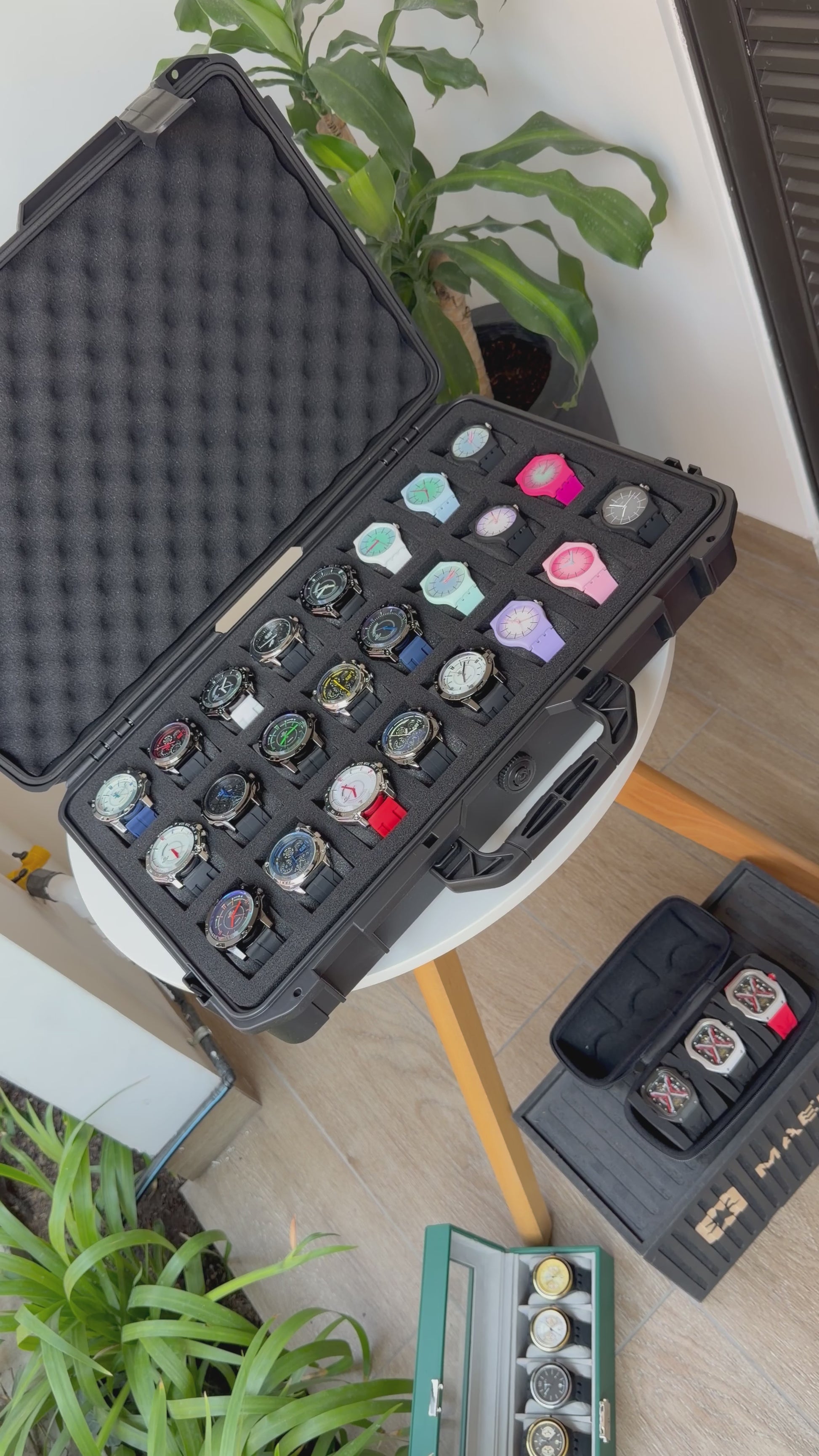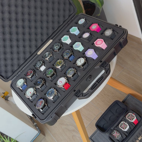 Relojeras se venden a parte (la categoría se llama relojeras y ahí están todas las disponibles para añadir a tu compra según la cantidad de relojes en el combo)