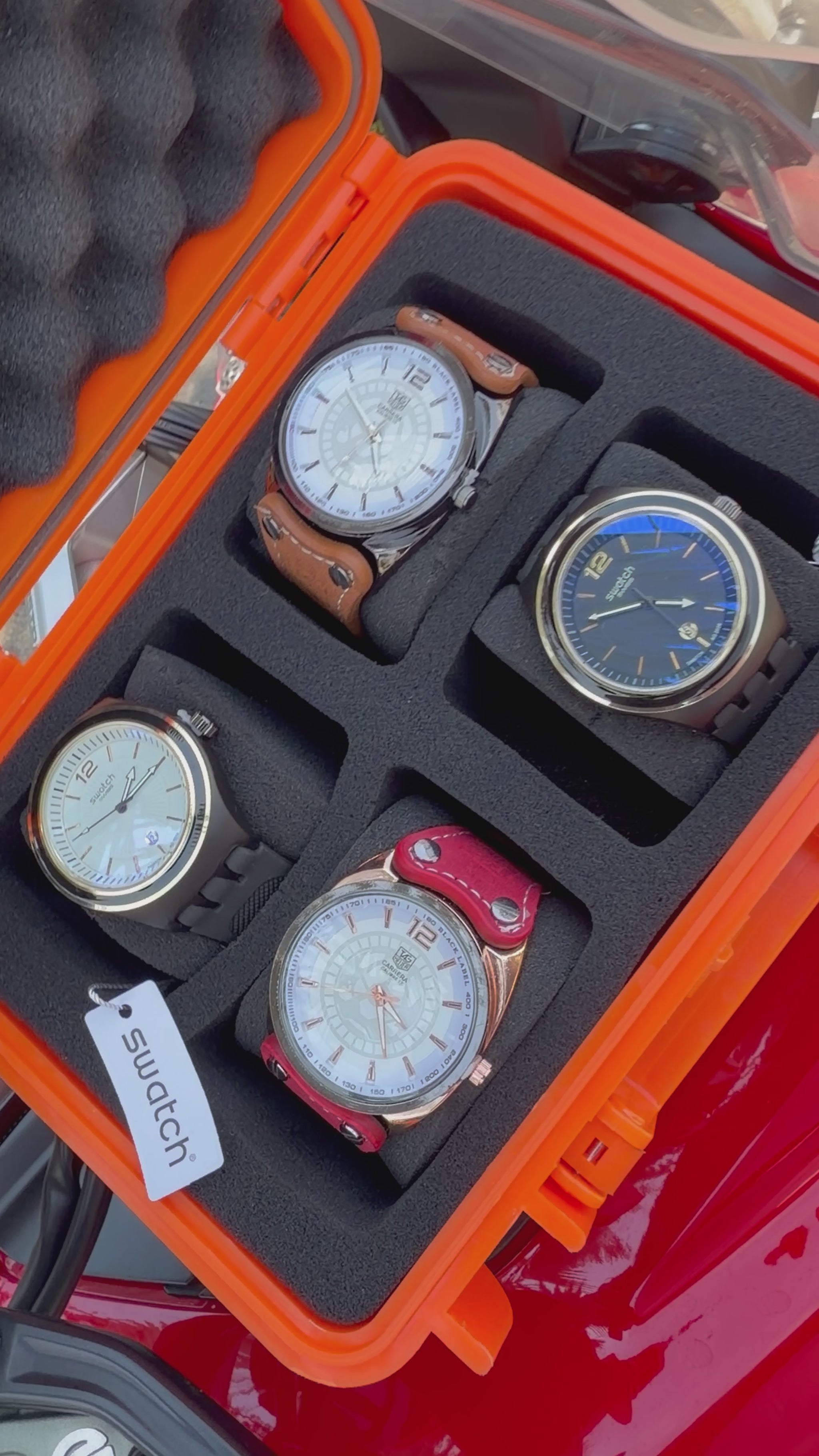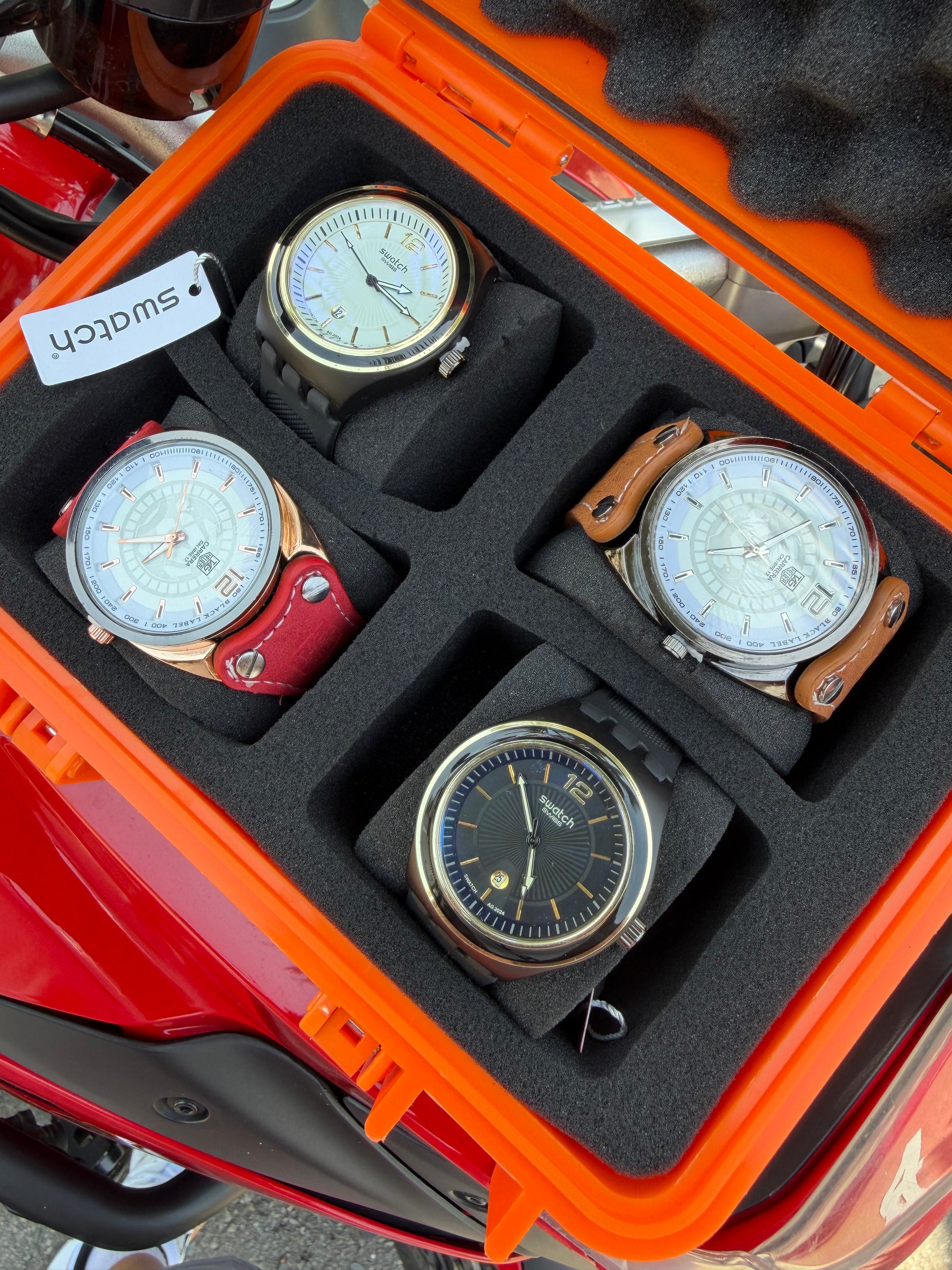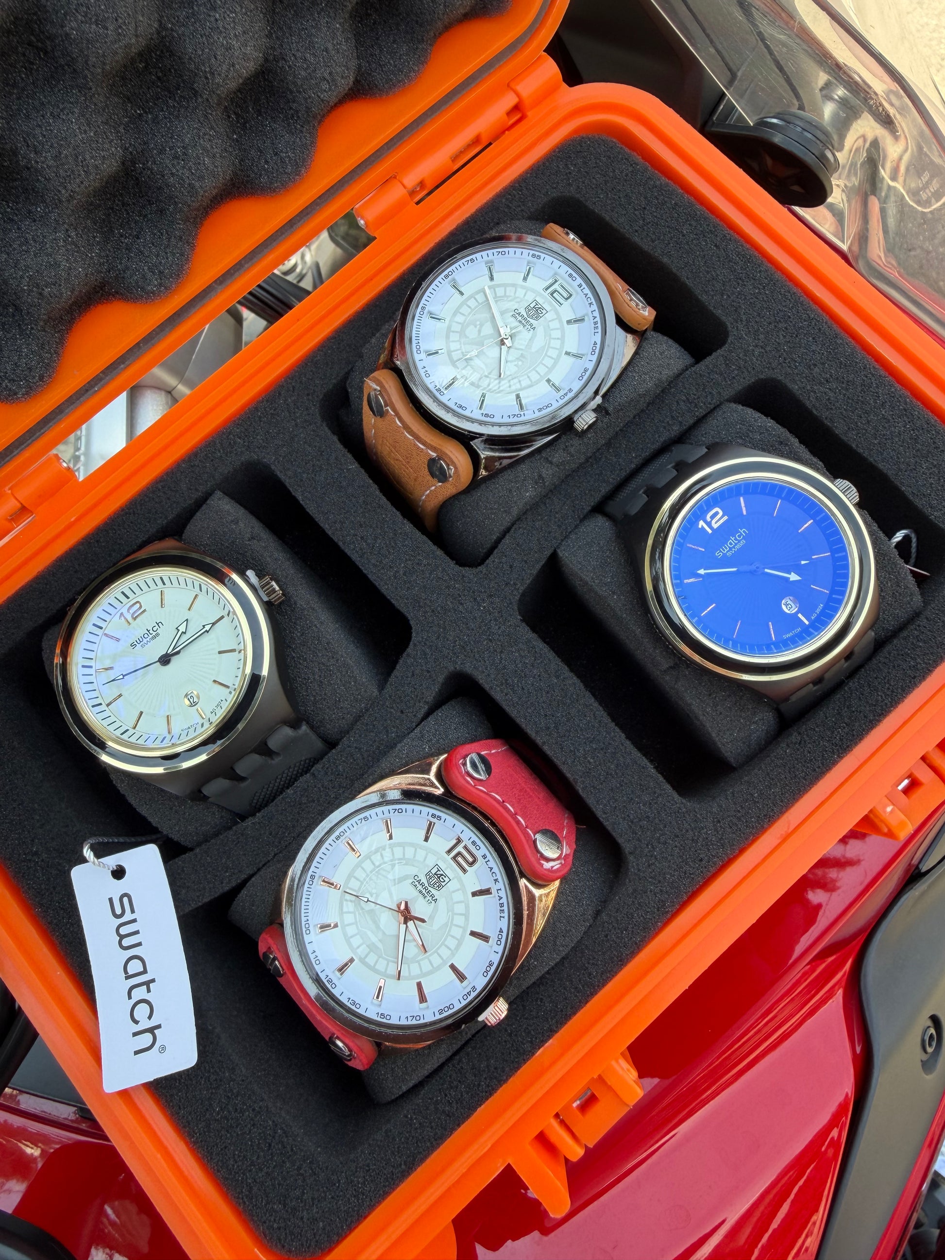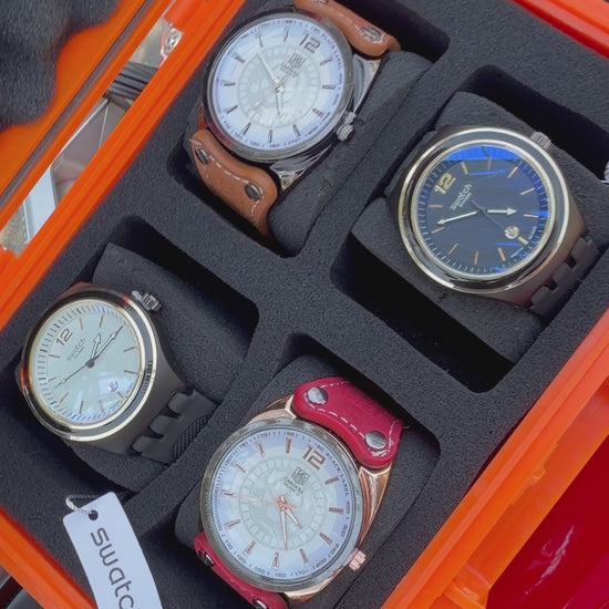 Relojeras se venden a parte (la categoría se llama relojeras y ahí están todas las disponibles para añadir a tu compra según la cantidad de relojes en el combo)
