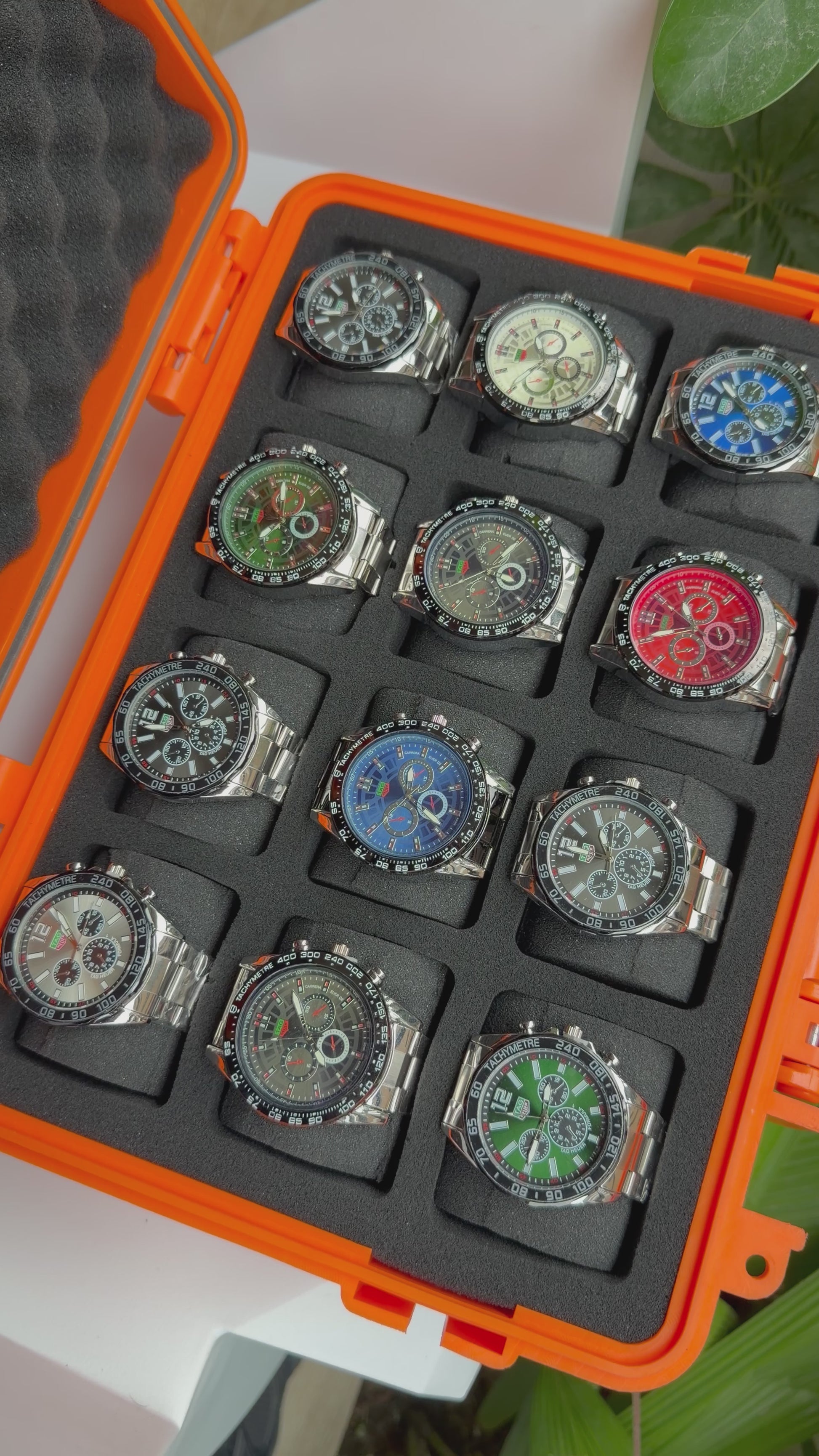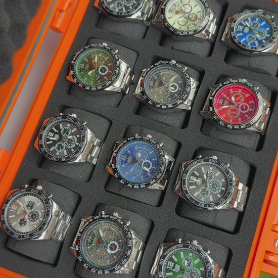 Relojeras se venden a parte (la categoría se llama relojeras y ahí están todas las disponibles para añadir a tu compra según la cantidad de relojes en el combo)