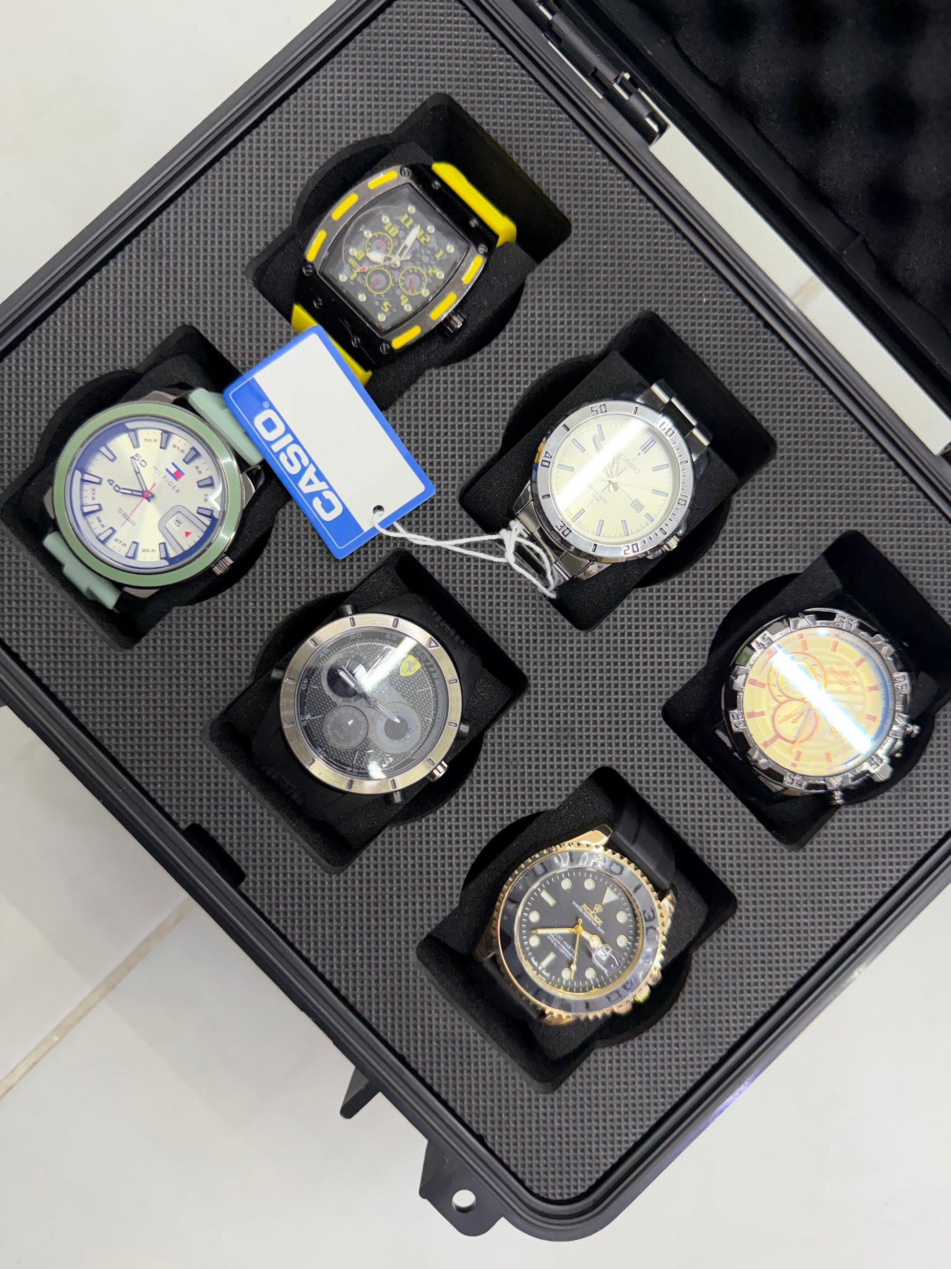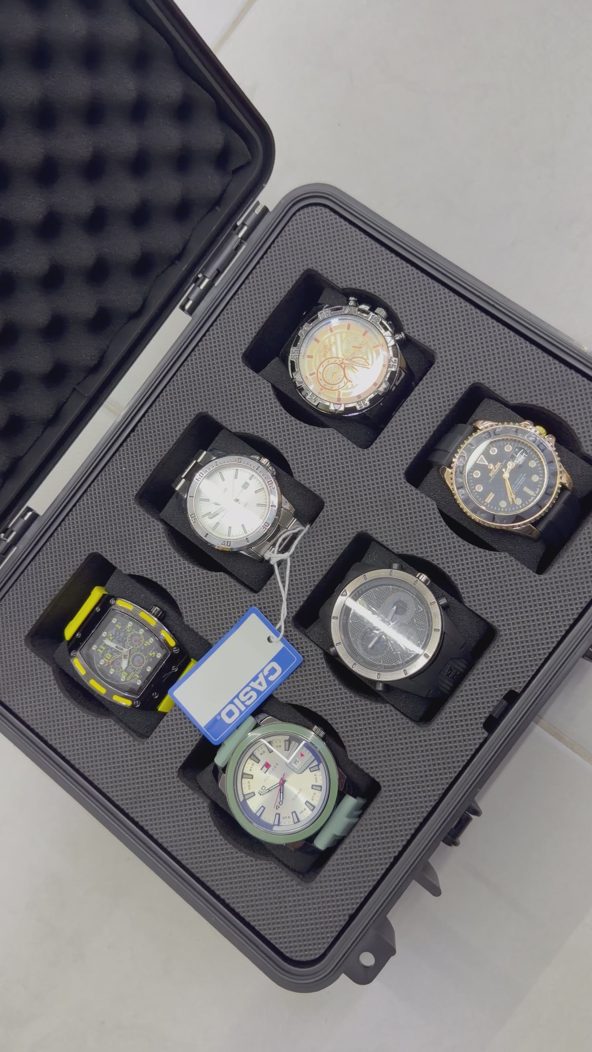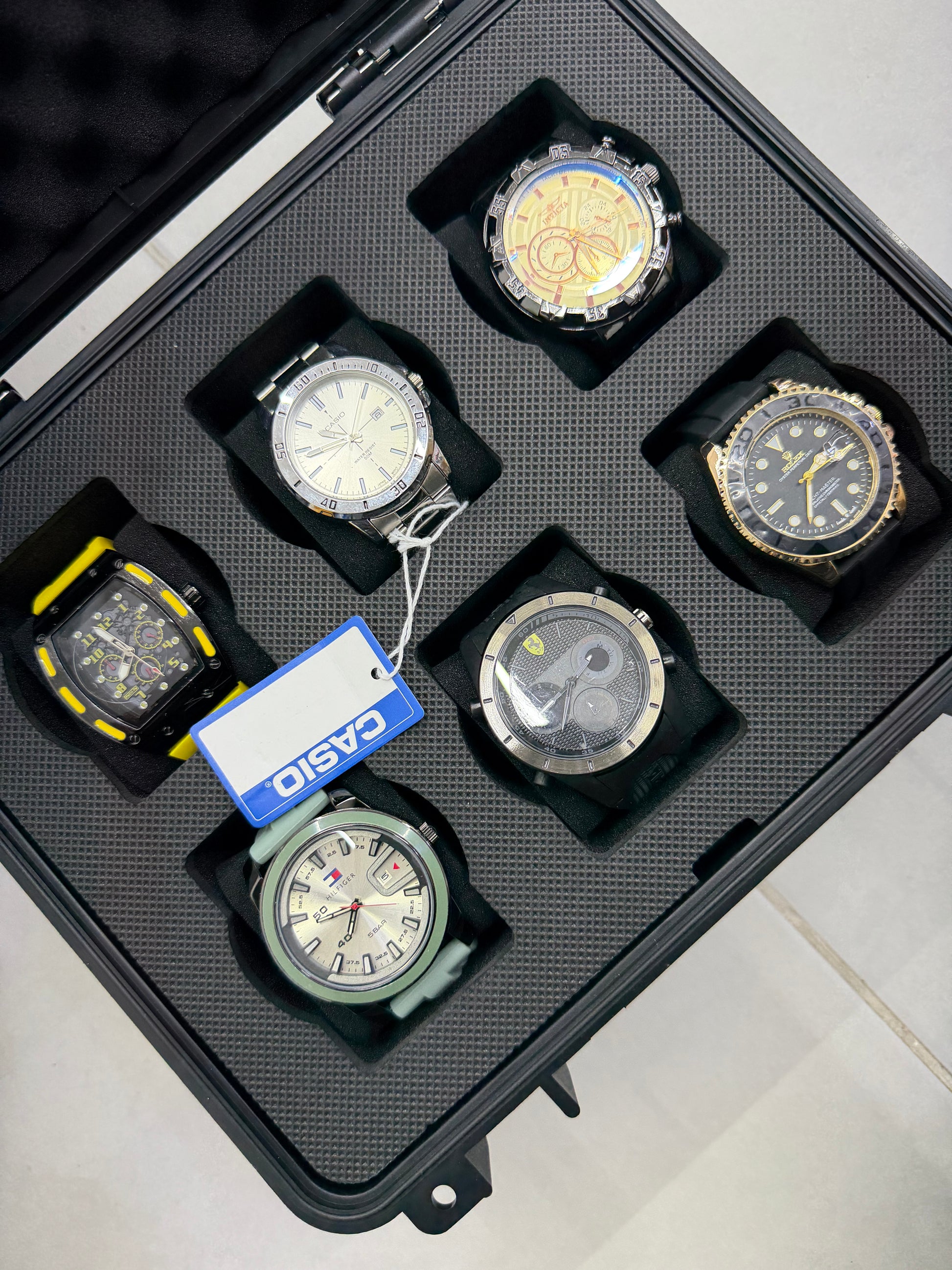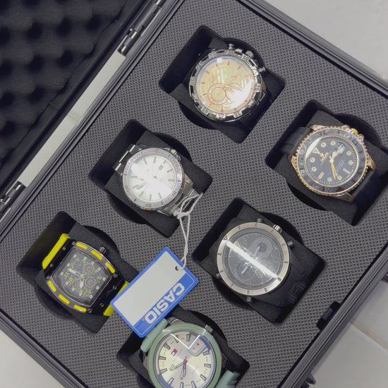 Relojeras se venden a parte (la categoría se llama relojeras y ahí están todas las disponibles para añadir a tu compra según la cantidad de relojes en el combo)