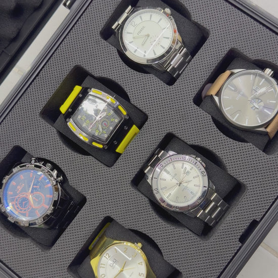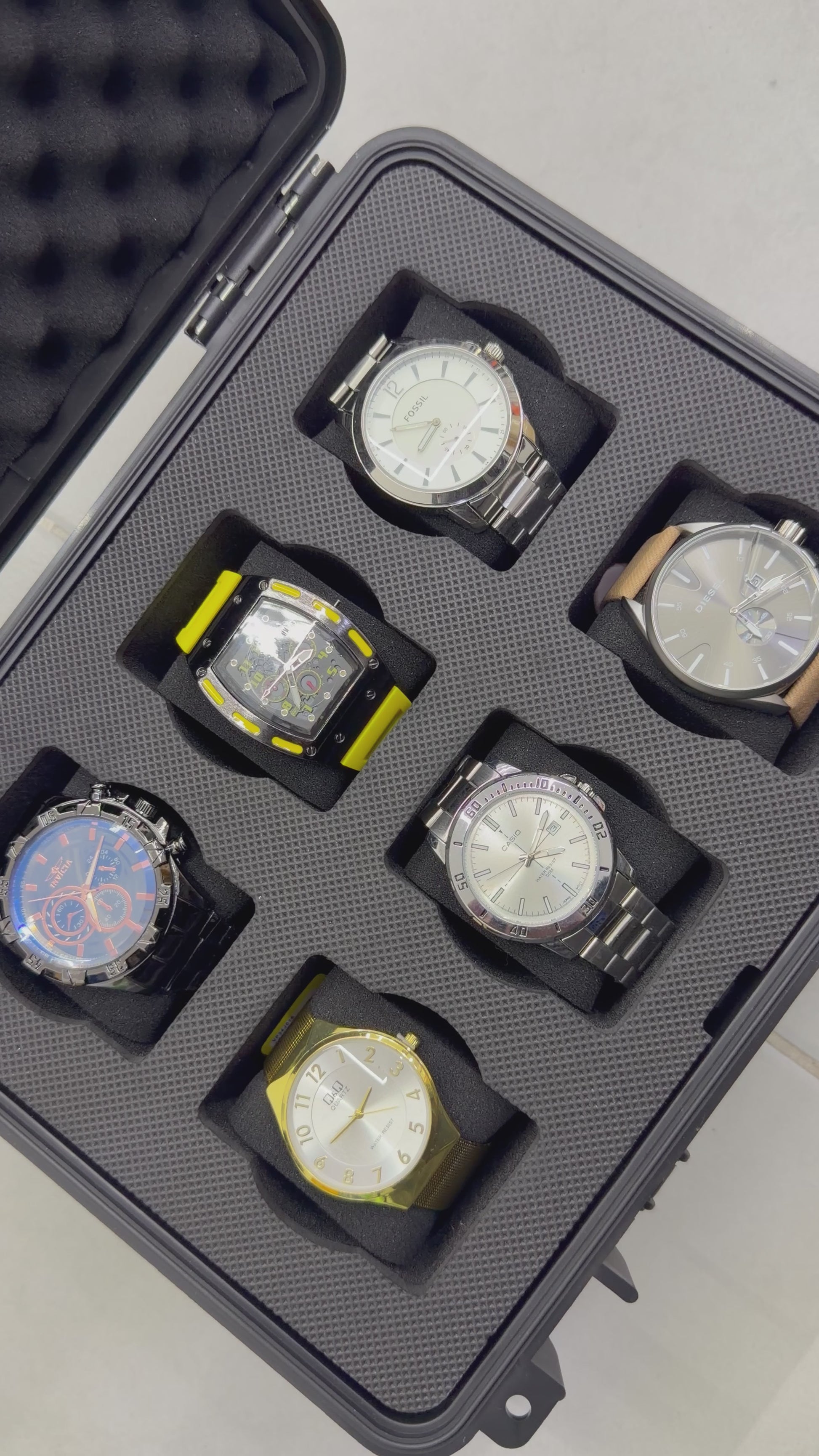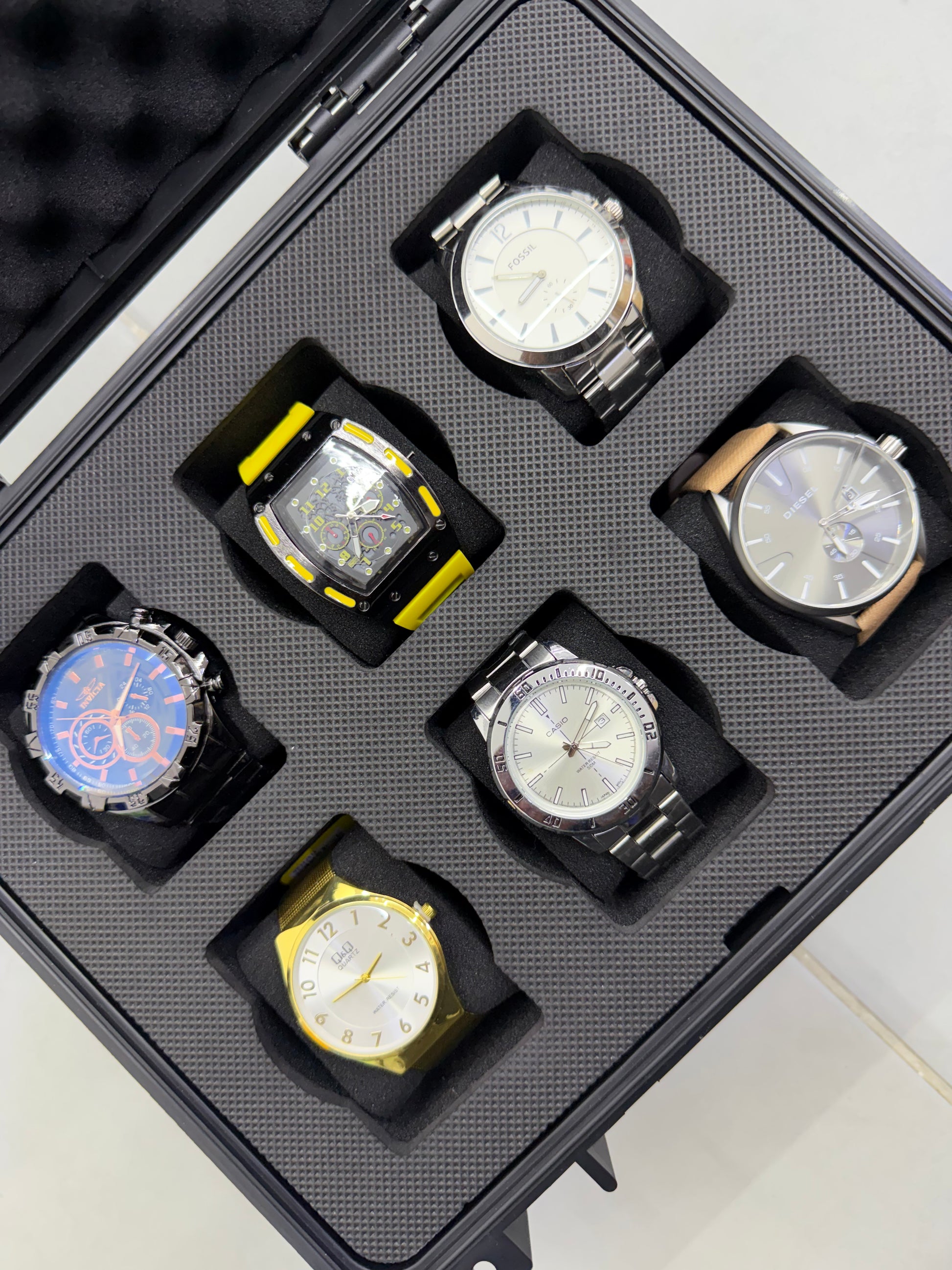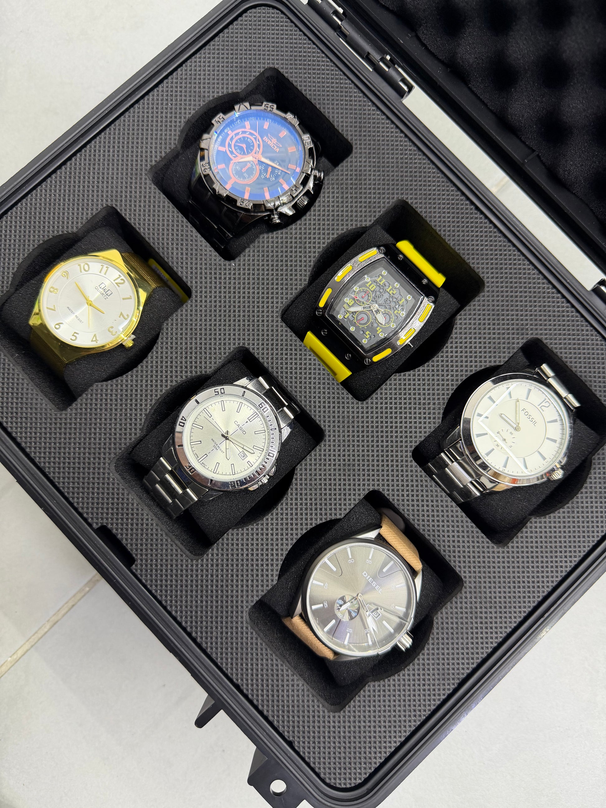 Relojeras se venden a parte (la categoría se llama relojeras y ahí están todas las disponibles para añadir a tu compra según la cantidad de relojes en el combo)