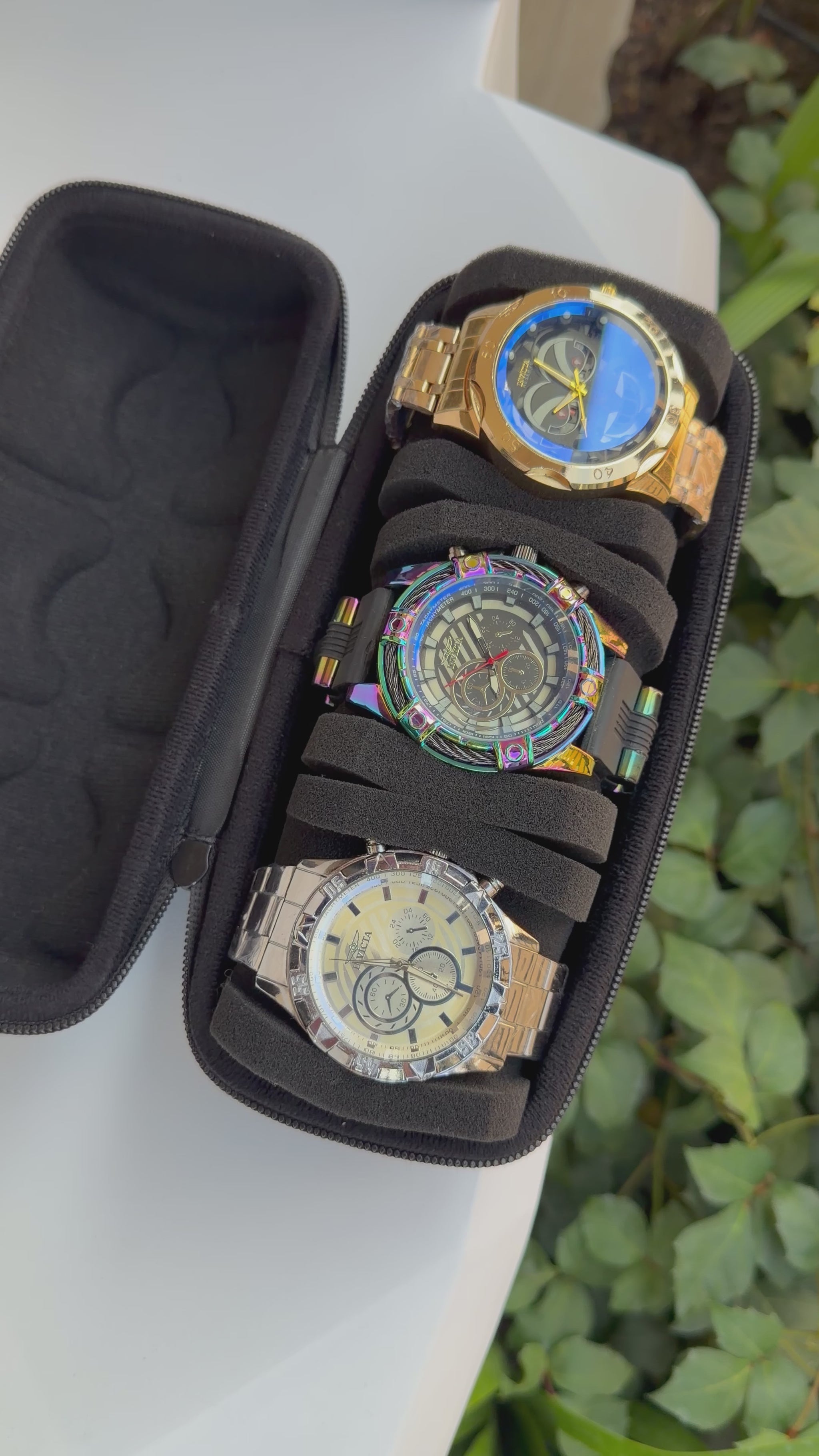 Relojeras se venden a parte (la categoría se llama relojeras y ahí están todas las disponibles para añadir a tu compra según la cantidad de relojes en el combo)