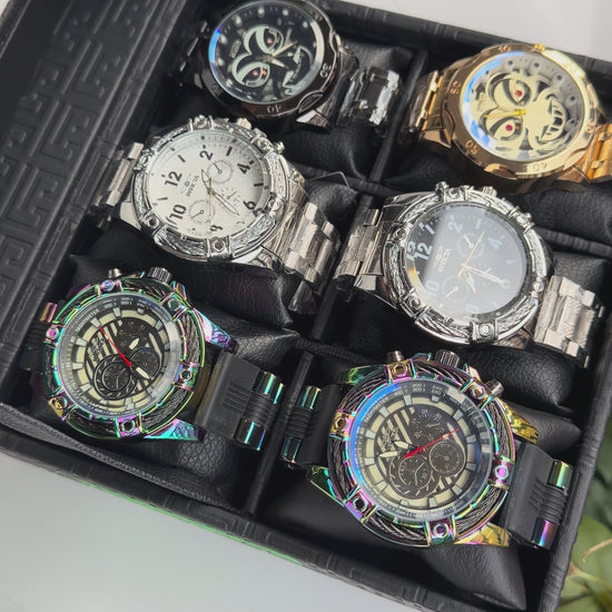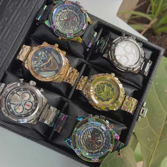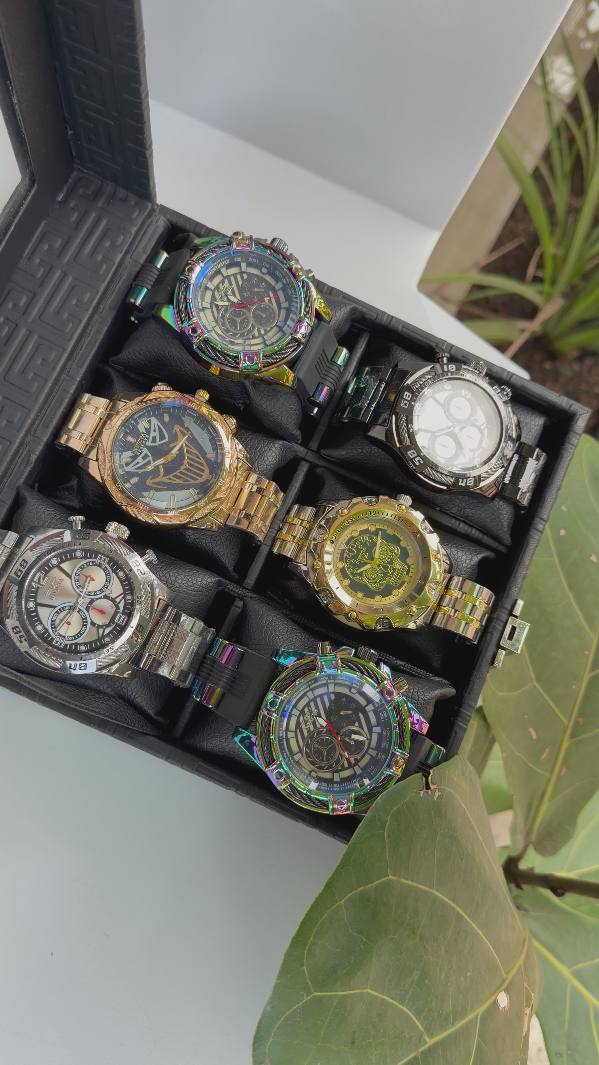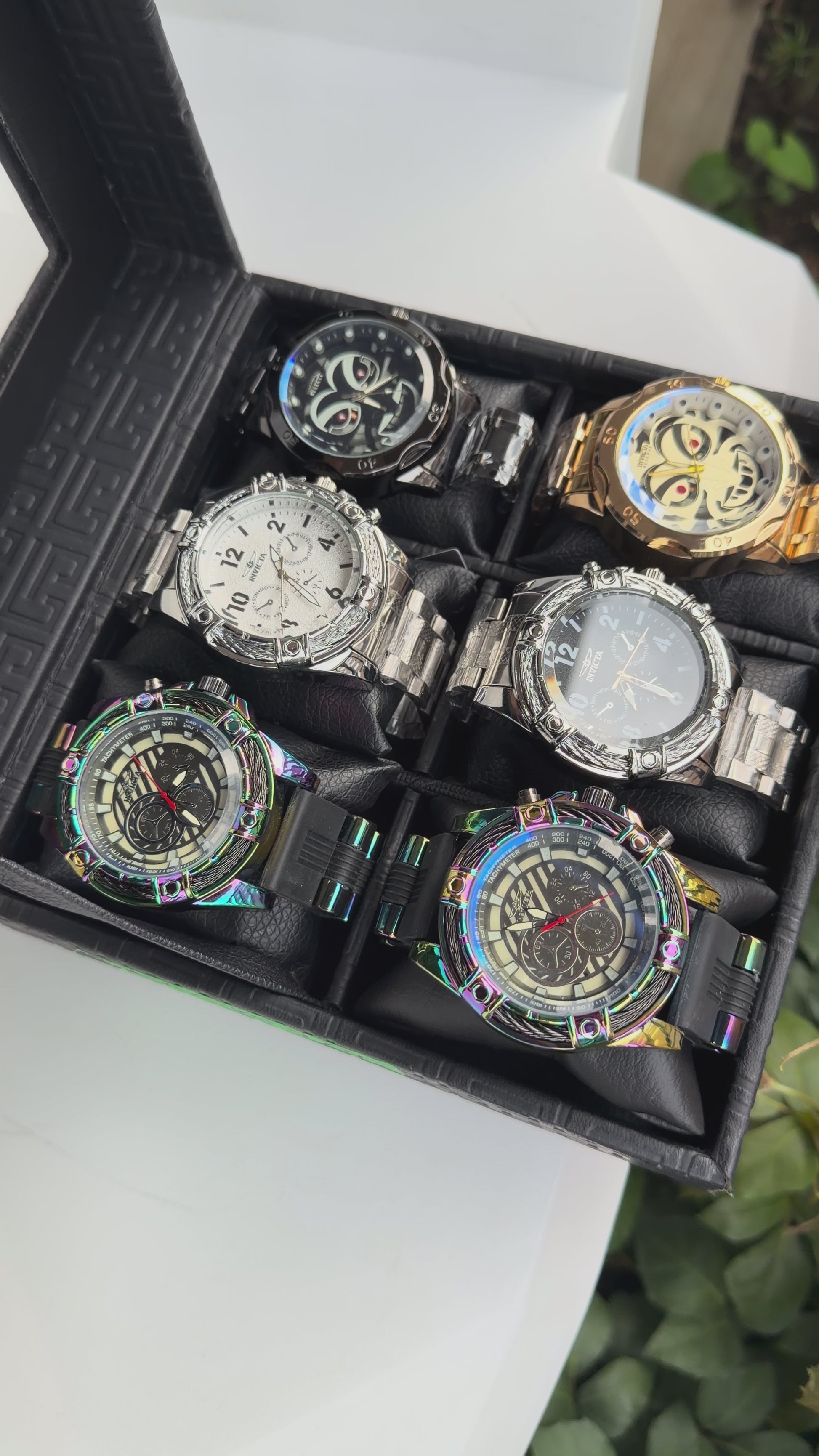 Relojeras se venden a parte (la categoría se llama relojeras y ahí están todas las disponibles para añadir a tu compra según la cantidad de relojes en el combo)