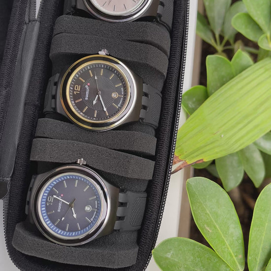 Relojeras se venden a parte (la categoría se llama relojeras y ahí están todas las disponibles para añadir a tu compra según la cantidad de relojes en el combo)